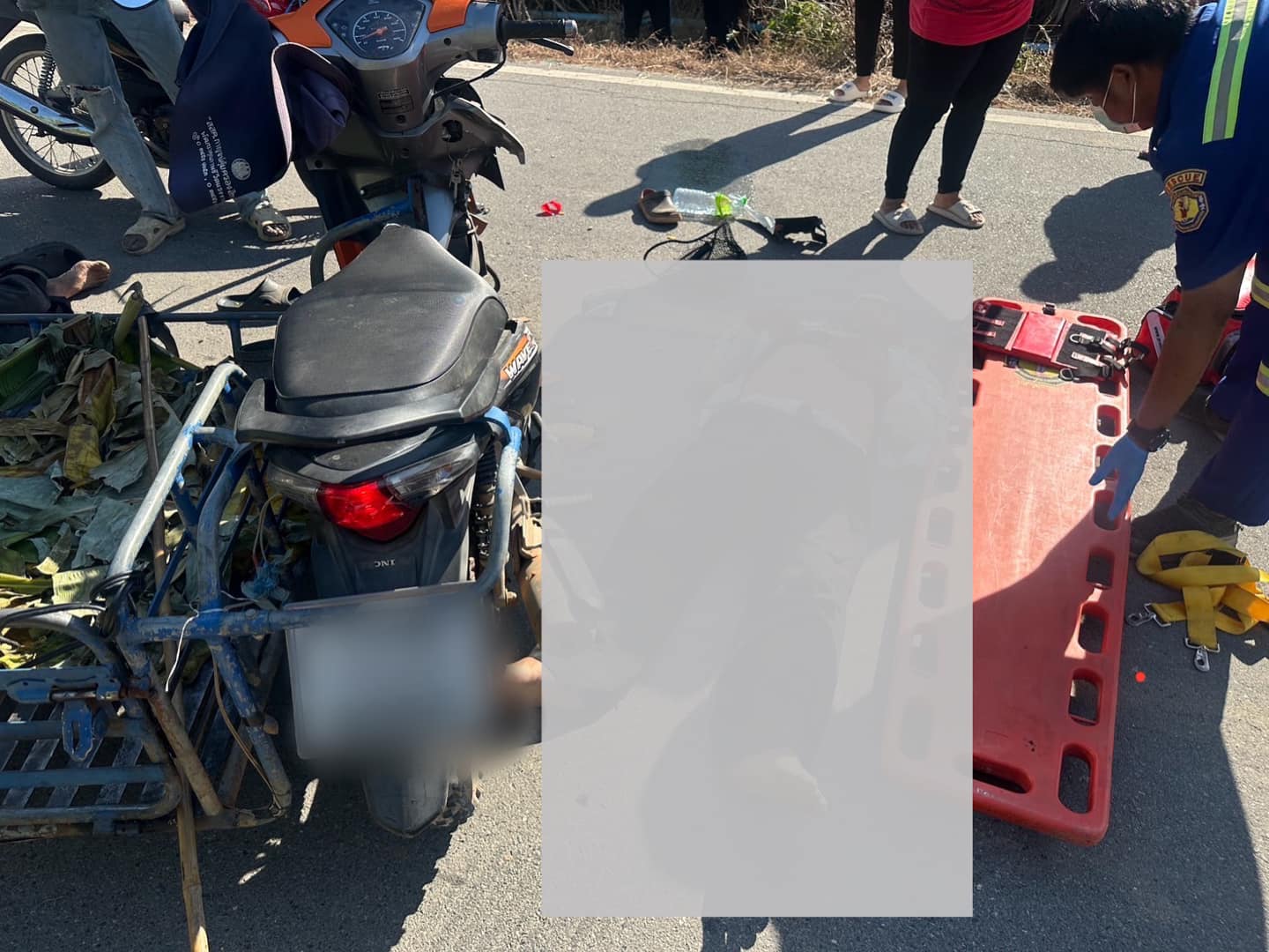 รถจักรยานยนต์ชนกับรถจักรยานยนต์พ่วงข้าง มีผู้เสียชีวิตเป็นคุณตา วัย 73 ปี จ.กาญจนบุรี
