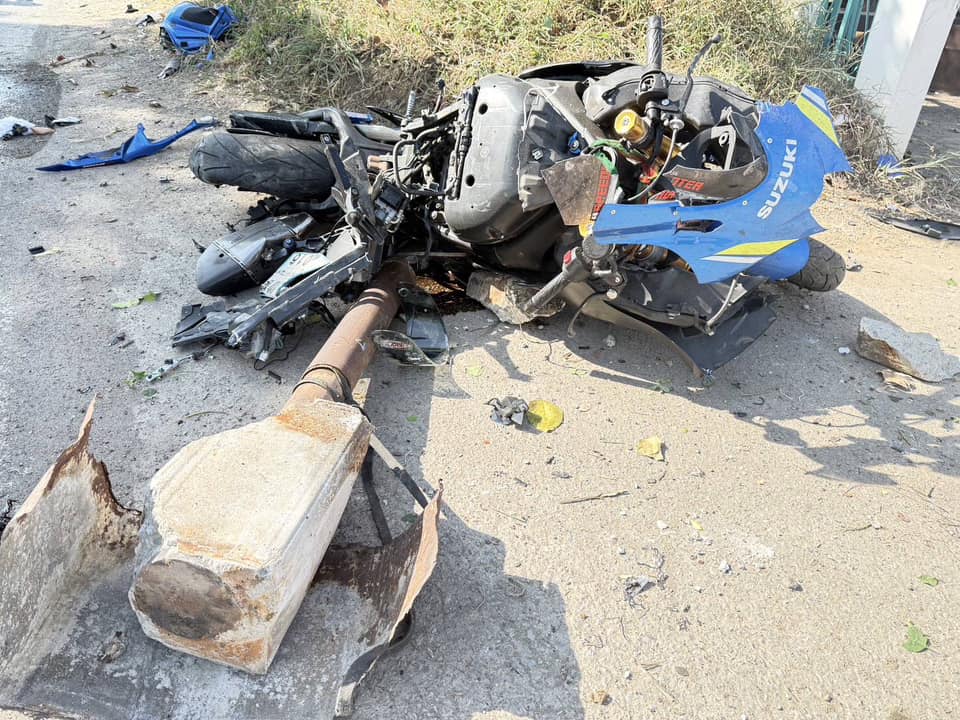 หนุ่มวัย 32 ปีขับขี่รถจักรยานยนต์ซูเปอร์ไบค์ เสียหลักชนเสาเหล็กก่อนฟาดกำแพงปูน เสียชีวิตกลางถนน จ.ปทุมธานี