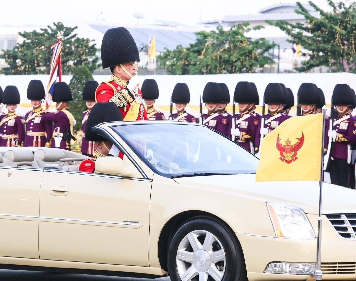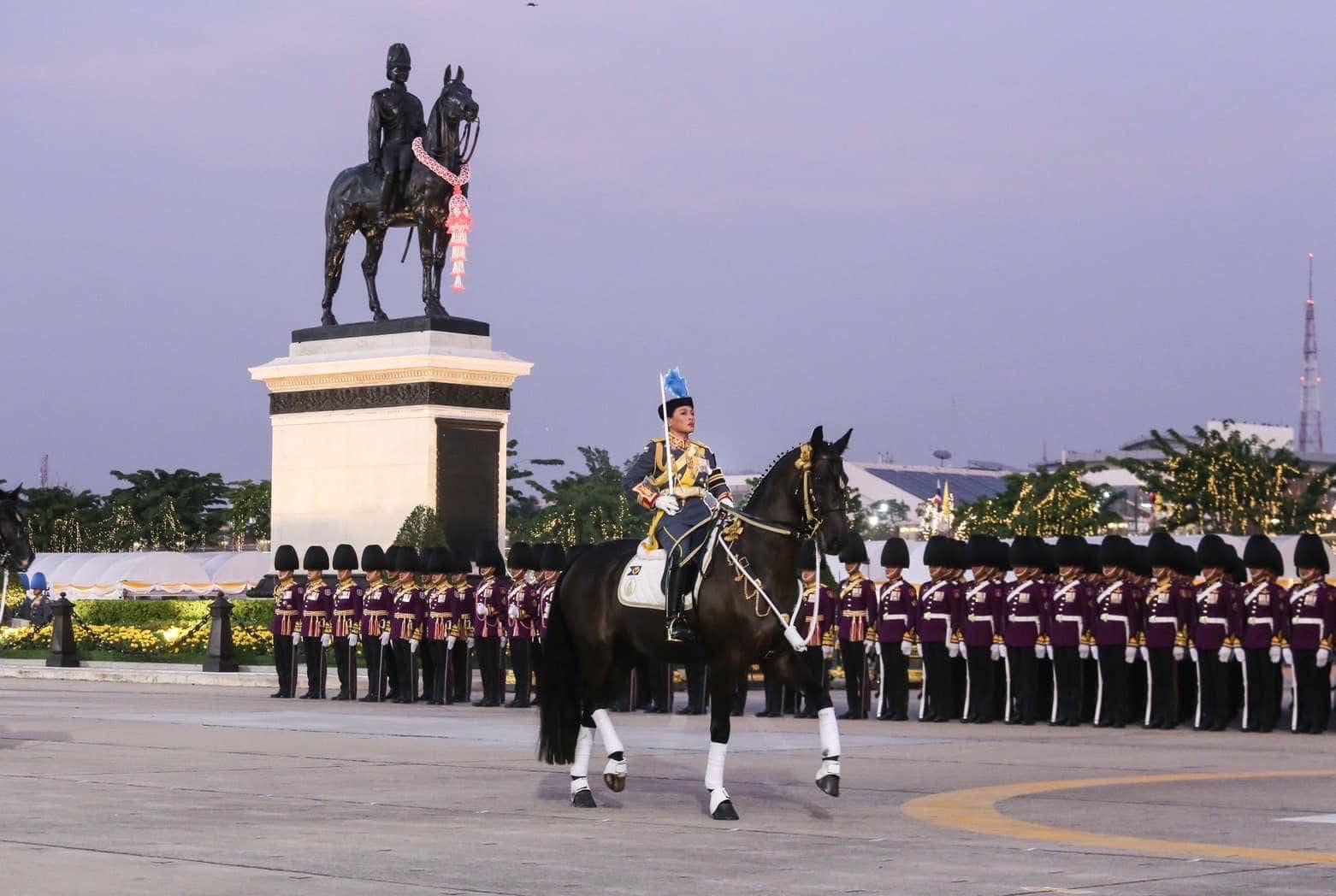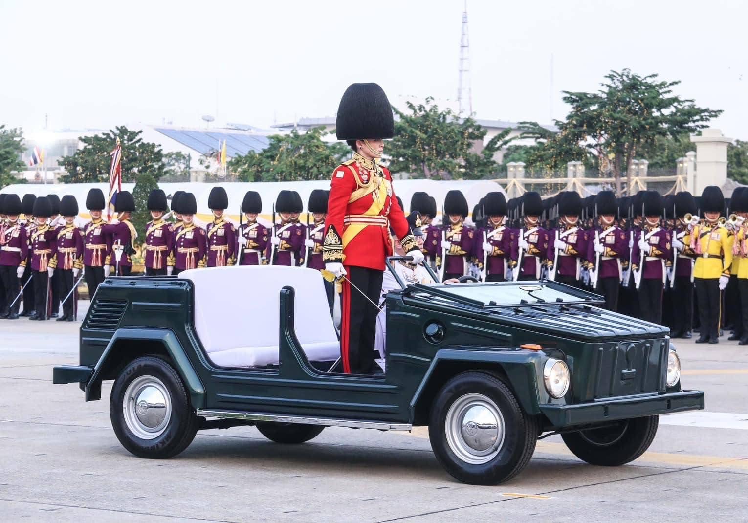 ในการนี้พลเอกหญิงสมเด็จพระนางเจ้าสุทิดา พัชรสุธาพิมลลักษณพระบรมราชินี ทรงนำการสวนสนามของทหารมหาดเล็กราชวัลลภรักษาพระองค์และทหารรักษาพระองค์สามเหล่าทัพในตำแหน่ง “ องค์ผู้บังคับการกองผสม ” พร้อมด้วยพลเอกหญิง สมเด็จพระเจ้าลูกเธอ เจ้าฟ้าสิริวัณณวรี นารีรัตนราชกัญญา ร่วมสวนสนาม ทรงม้านำขบวนกองพันทหารม้ารักษาพระองค์ ในตำแหน่ง “ องค์ผู้บังคับกองพันทหารม้ารักษาพระองค์ “