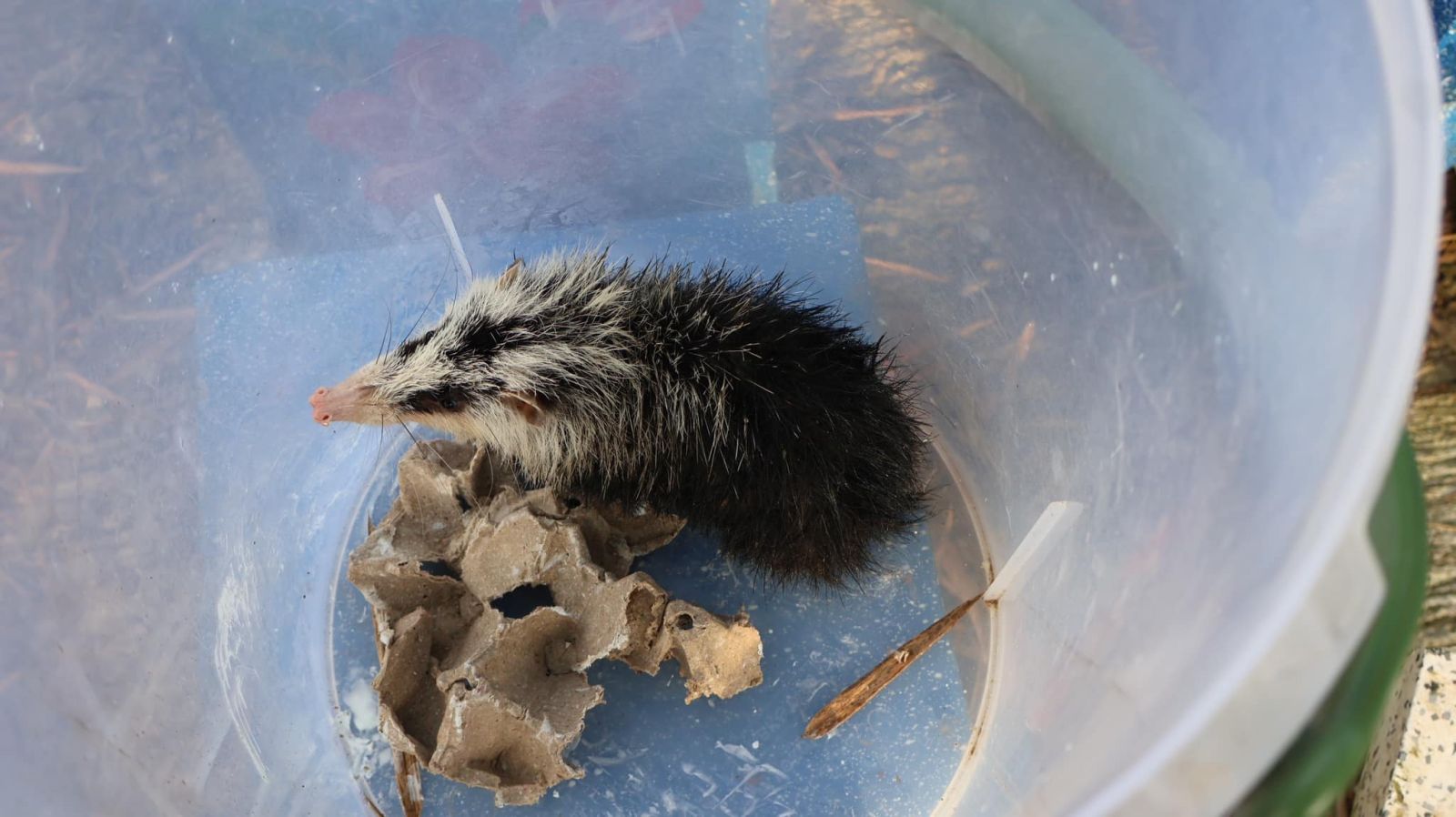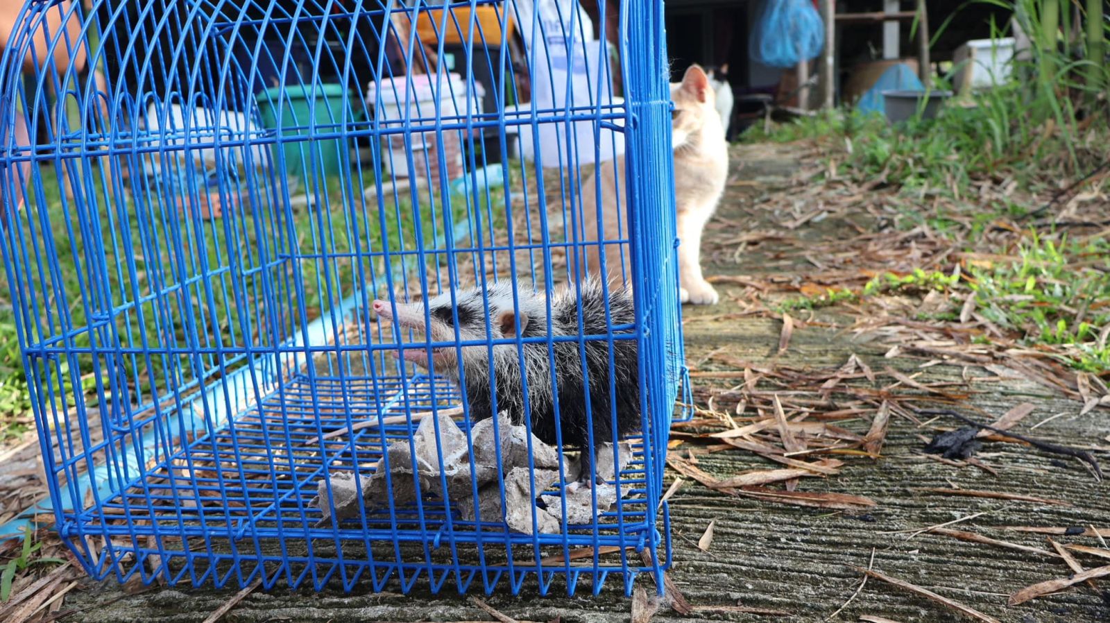 เมื่อวันที่ 4 ธ.ค.67 ผู้สื่อข่าวได้รับแจ้งจาก น.ส.พัชรรินทร์ ประทุมเมฆ ประธานชมรมคนรักสัต์เบตง ว่า ที่บ้านหลังหนึ่ง ในพื้นที่ ม.1 ต.ยะรม อ.เบตง จ.ยะลา มีสัตว์หน้าตาแปลกประหลาด จึงเดินทางไปตรวจสอบ พบบ้านดังกล่าวเป็นบ้านชั้นเดียว อยู่ติดกับคลองเบตง บริเวณรอบบ้านเลี้ยงปลา ไก่ กระต่าย แมว และปลูกผัก ปลูกต้นไม้ ร่มรื่นน่าอยู่ ที่โต๊ะม้านั่งข้างคลอง มีโหลพลาสติกกลมขนาดใหญ่วางอยู่ ภายในก็มีสัตว์หน้าตาแปลกประหลาดอยู่ด้านใน คือมีลักษณะลำตัวเหมือนหนู แต่หน้าตาคล้ายกับหมู และมีกลิ่นเหม็นมาก และดูท่าทางดุร้ายเวลาเข้าใกล้ จึงได้หากรงมาใส่และชั่งน้ำหนักดู พบว่าสัตว์ตัวนี้มีน้ำหนักถึง 1 กิโลกรัม