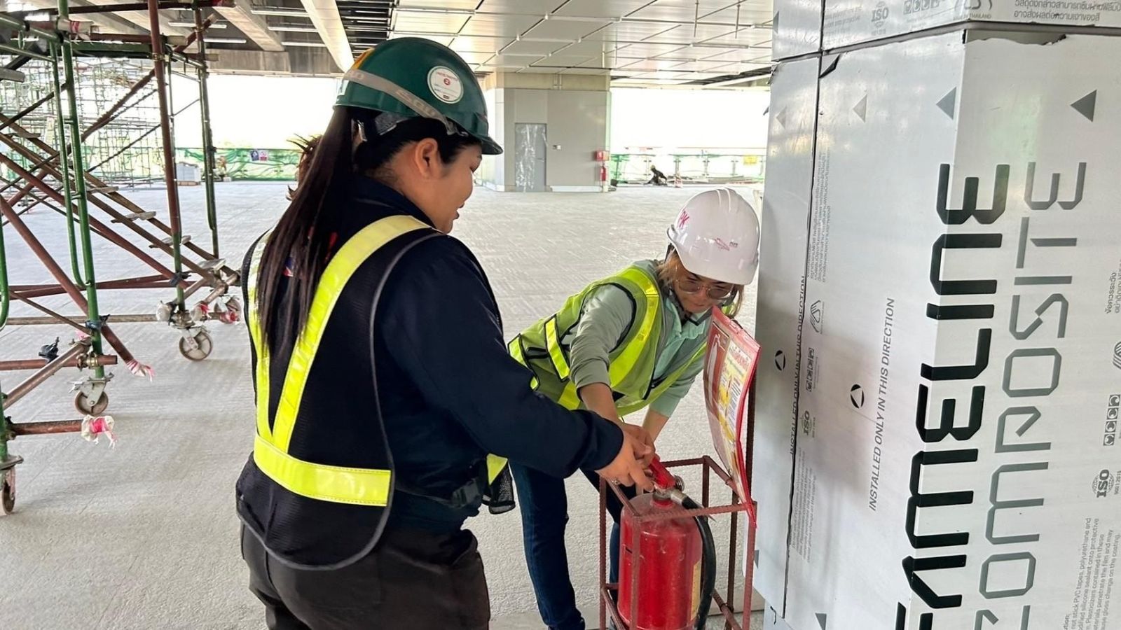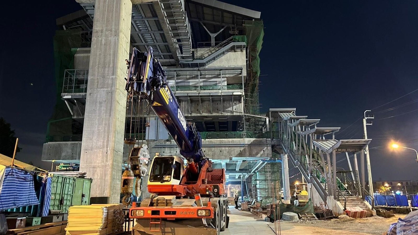 บริเวณสถานีอิมแพ็ค เมืองทองธานี (MT01) และสถานีทะเลสาบเมืองทองธานี (MT02) ทั้งในช่วงเวลากลางวันและในช่วงเวลากลางคืน เพื่อตรวจสอบการปฏิบัติงานก่อสร้างให้ได้มาตรฐานตามมาตรการด้านความปลอดภัยโดยเฉพาะอย่างยิ่งการทำงานบนที่สูง อาทิ ตรวจสอบสภาพความแข็งแรงและความพร้อมใช้งานของ ราวกันตก Safety Net และอุปกรณ์ต่างๆ การติดตั้งแนวเขตห้ามเข้าสำหรับบุคคลภายนอกเพื่อความปลอดภัย การติดตั้งผ้าใบกันไฟจากการเชื่อม การติดตั้งป้ายเตือนและไฟส่องสว่างตามแนวสายทางให้เพียงพอต่อการทำงานและความปลอดภัยต่อผู้ที่สัญจรผ่าน ขณะเดียวกัน ยังคงเข้มงวดและให้ความสำคัญกับการปฏิบัติตามมาตรการด้านสิ่งแวดล้อม โดยเฉพาะด้านฝุ่นละอองจากการทำงาน และได้สั่งการให้ที่ปรึกษาฯ ควบคุมให้เจ้าหน้าที่ทุกคนสวมใส่อุปกรณ์คุ้มครองความปลอดภัยส่วนบุคคลตลอดระยะเวลาที่ปฏิบัติงาน และปฏิบัติตามมาตรฐานความปลอดภัยอย่างเคร่งครัด เพื่อให้สอดคล้องตาม “ปฏิญญาว่าด้วยความปลอดภัยในการก่อสร้างโครงการระบบรถไฟฟ้าขนส่งมวลชน Zero Fatal Accident”