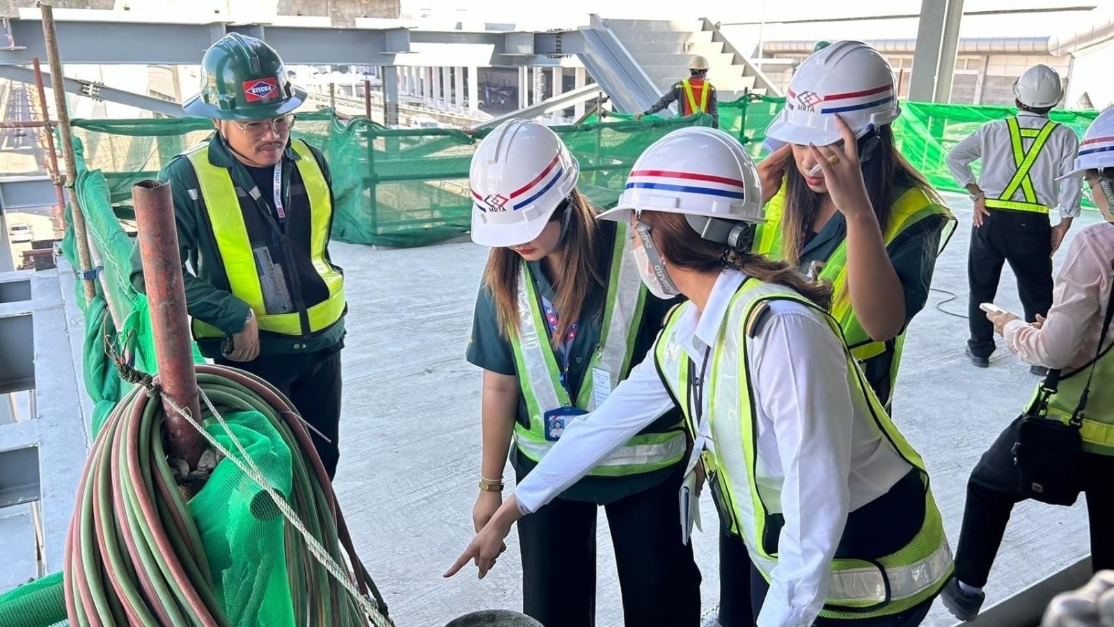 การรถไฟฟ้าขนส่งมวลชนแห่งประเทศไทย (รฟม.) โดยสำนักงานความปลอดภัย อาชีวอนามัยและสภาพแวดล้อมในการทำงาน (สปอ.) ลงพื้นที่ตรวจความปลอดภัยในการก่อสร้าง โครงการรถไฟฟ้าสายสีชมพูส่วนต่อขยาย ช่วงสถานีศรีรัช – เมืองทองธานี