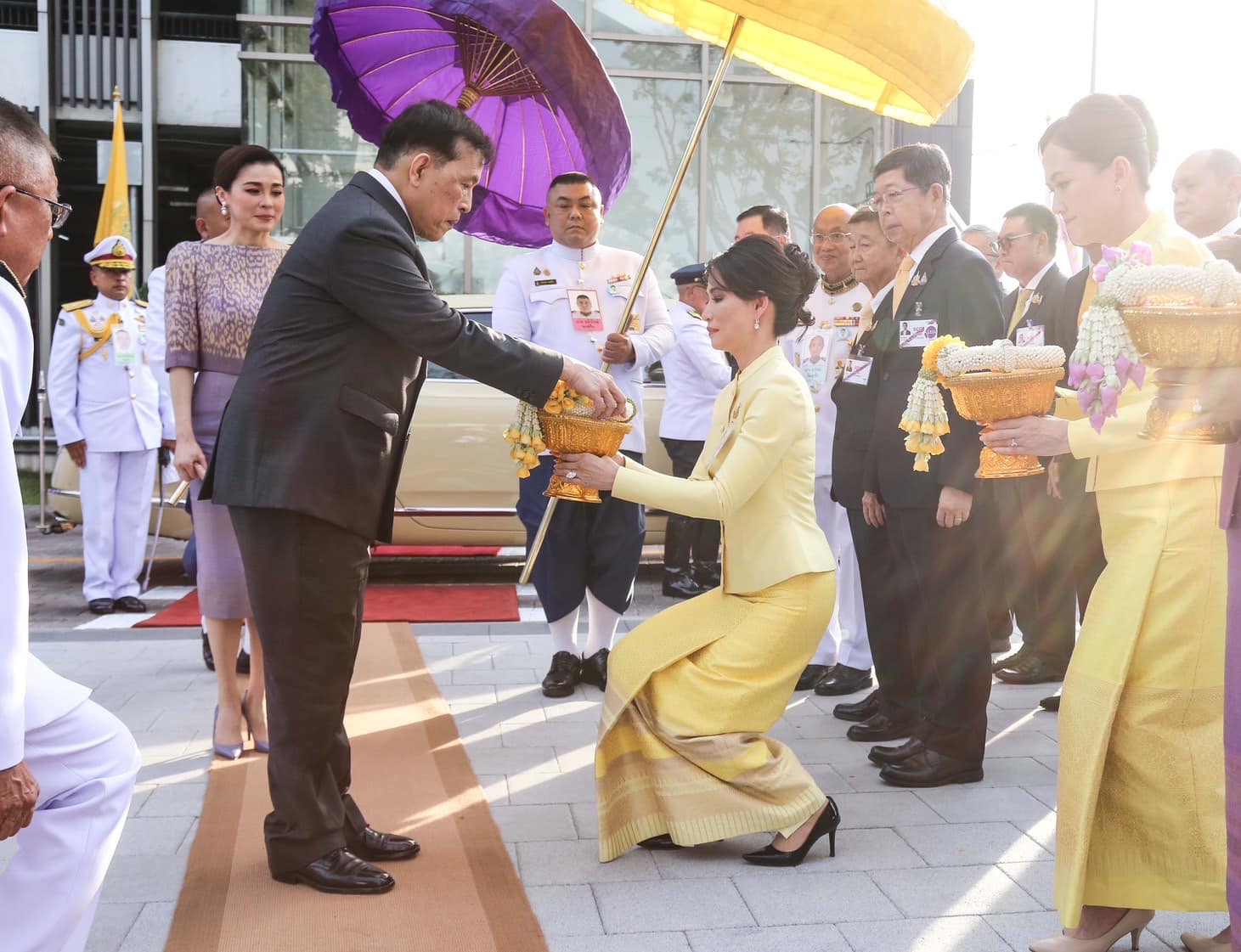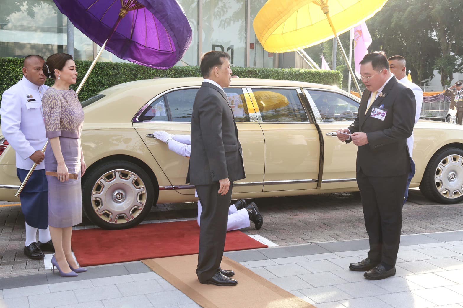 เมื่อเสด็จพระราชดำเนินถึง นางสาวแพทองธาร ชินวัตร นายกรัฐมนตรี นายฉัตรชัย พรหมเลิศ ประธานกรรมการ บริษัท ปตท. จำกัด (มหาชน) เฝ้าทูลละอองธุลีพระบาทรับเสด็จ เสร็จแล้ว พระบาทสมเด็จพระเจ้าอยู่หัว และสมเด็จพระนางเจ้า ฯ พระบรมราชินี เสด็จพระราชดำเนินเข้าห้องรับรอง ทรงลงพระปรมาภิไธย และพระนามาภิไธย ในสมุดที่ระลึก จากนั้น เสด็จเข้าพลับพลาพิธี ทรงจุดธูปเทียนเครื่องนมัสการบูชาพระรัตนตรัย ทรงกราบ ทรงศีล ประธานสงฆ์ถวายศีล จบ นายคงกระพัน อินทรแจ้ง ประธานเจ้าหน้าที่บริหารและกรรมการผู้จัดการใหญ่ บริษัท ปตท. จำกัด (มหาชน) ทูลเกล้าทูลกระหม่อมถวายสูจิบัตร แด่พระบาทสมเด็จพระเจ้าอยู่หัว นางพงษ์สวาท นีละโยธิน ประธานกรรมการบริหารความเสี่ยงองค์กร บริษัท ปตท. จำกัด (มหาชน) ทูลเกล้าทูลกระหม่อมถวายสูจิบัตร แด่สมเด็จพระนางเจ้า ฯ พระบรมราชินี นายฉัตรชัย พรหมเลิศ ประธานกรรมการ บริษัท ปตท. จำกัด (มหาชน) กราบบังคมทูลรายงานความเป็นมาโครงการปรับปรุงภูมิทัศน์บนพื้นที่ถนนกำแพงเพชร 6 แนวขนานคลองเปรมประชากร