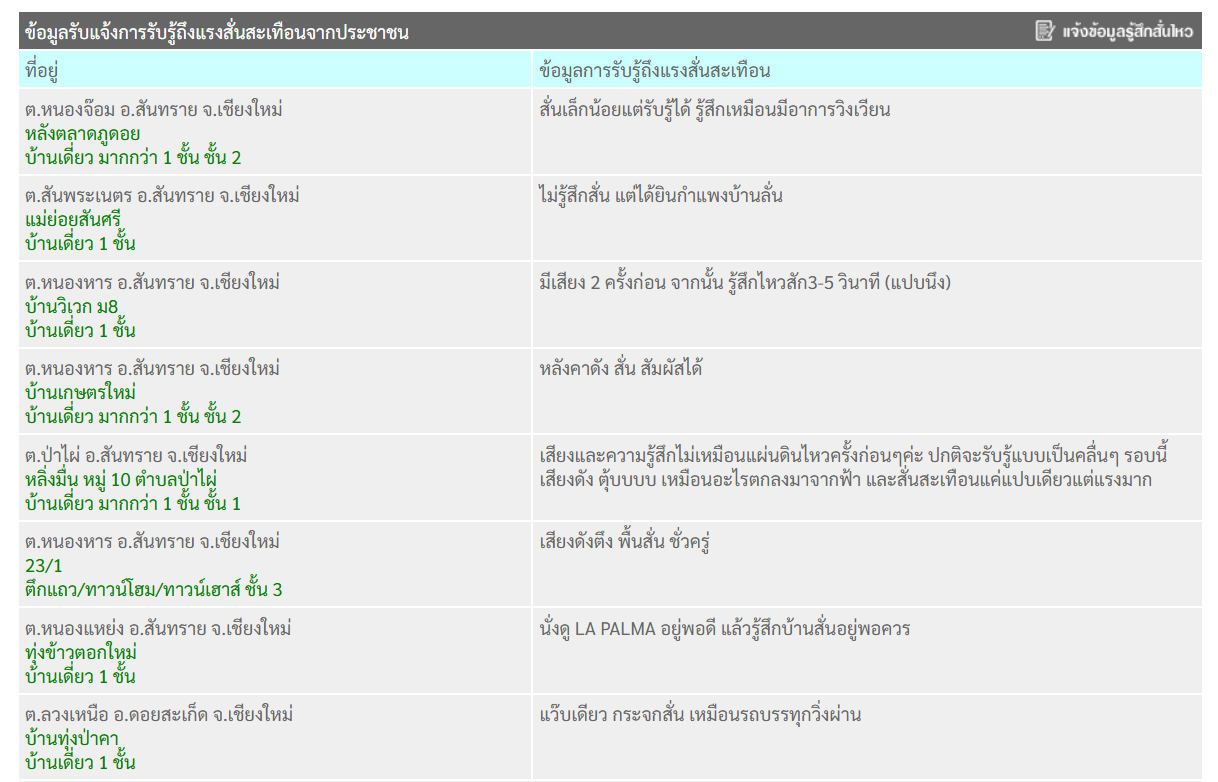 แผ่นดินไหว ที่จังหวัดเชียงใหม่ รับรู้ได้ถึงแรงสั่นสะเทือนในพื้นที่ อ.สันทราย และ อ.ดอยสะเก็ด