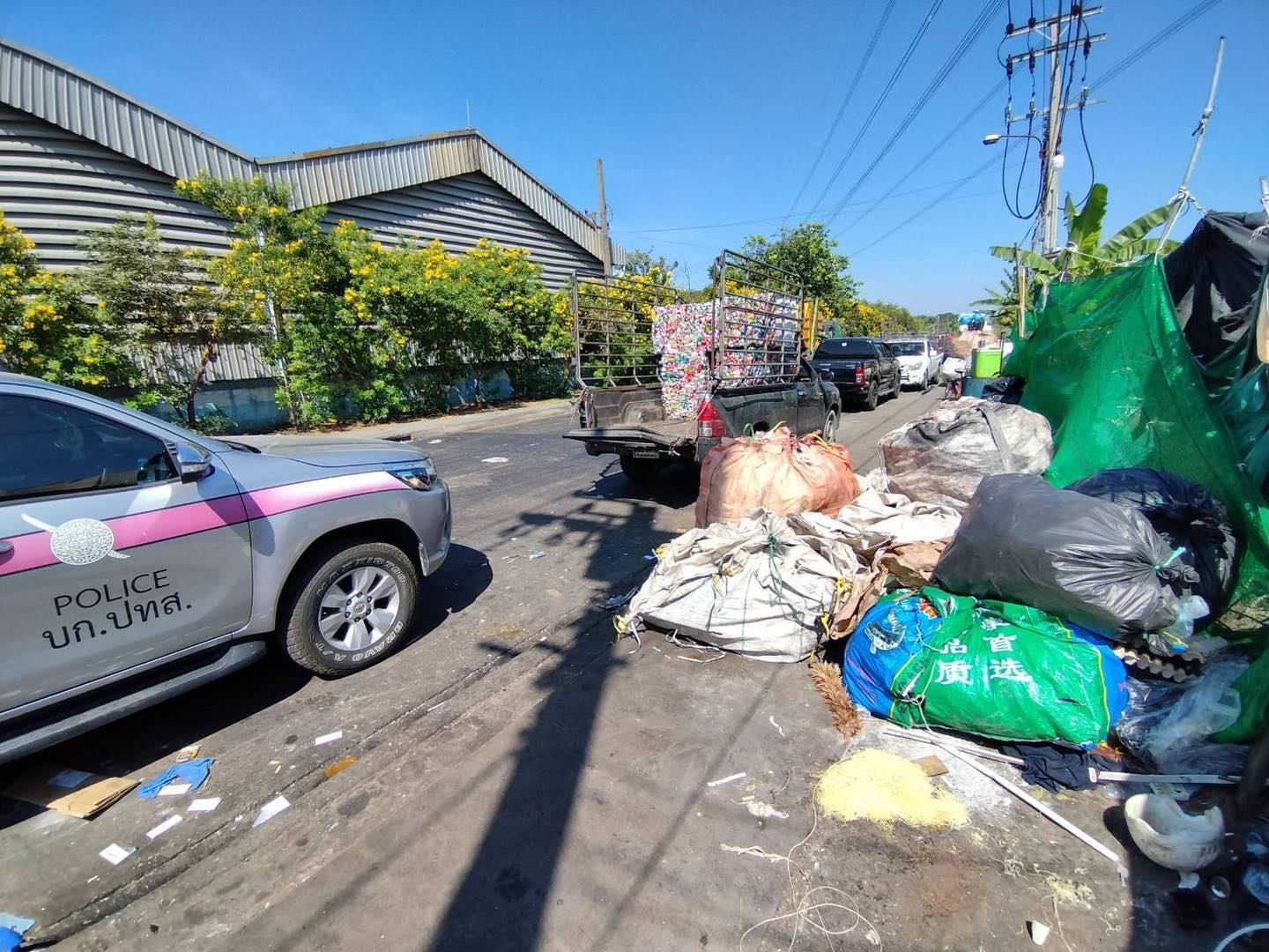 จากการลงพื้นที่พร้อมกัน 20 จุด ภายในซอยโรงขยะ กทม. (อ่อนนุช 86) พบว่าภายในซอยมีสภาพสกปรก เต็มไปด้วยขยะ บริเวณหน้าร้านรับซื้อของเก่าส่วนมากมีขยะกองอยู่ริมถนนข้างทางจำนวนมาก ขณะตรวจสอบร้านรับซื้อของเก่าทั้ง 20 ร้าน พบว่าเต็มไปด้วยกองขยะที่รอนำไปขายจำนวนมาก มีสภาพสกปรกและส่งกลิ่นเหม็น โดยพบร้านค้าที่ไม่มีใบอนุญาตประกอบกิจการที่เป็นอันตรายต่อสุขภาพ จำนวน 14 ร้าน ส่วนอีก 5 ร้านมีใบอนุญาต และอีก 1 ร้านปิดทำการ จากการสอบสวน ผู้ต้องหาให้การว่า พวกตนรับซื้อขยะจากประชาชนทั่วไปที่นำมาขาย และนำมาเก็บสะสมรอคัดแยก ก่อนจะนำไปขายต่ออีกทอดหนึ่ง จึงแจ้งข้อกล่าวหาและนำตัวผู้ต้องหาทั้งหมดส่ง พงส.กก.1 บก.ปทส. ดำเนินคดีต่อไป