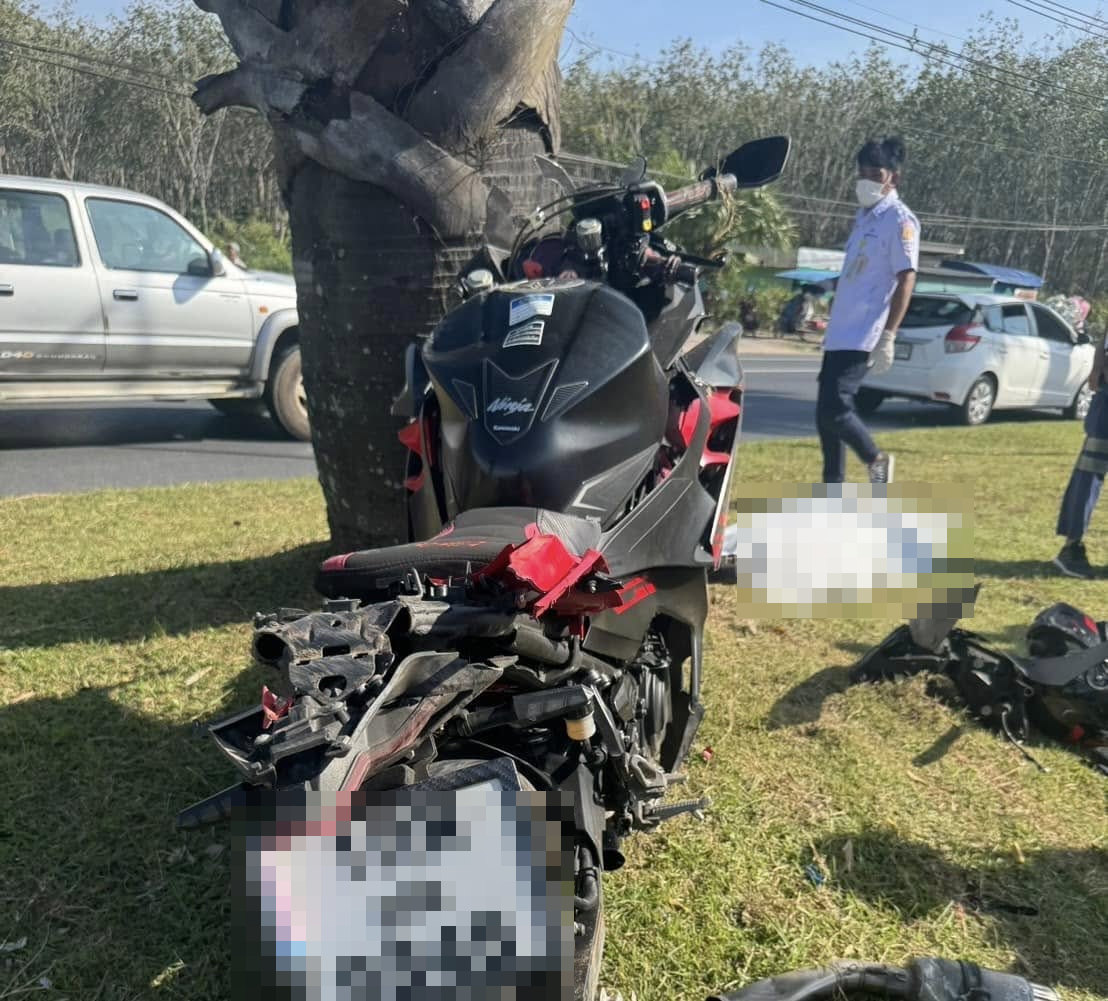 ที่เกิดเหตุ บนเกาะกลางถนน พบรถจักรยานยนต์ ยี่ห้อคาวาซากิ นินจา สีดำ - แดง ป้ายทะเบียน 9345 ภูเก็ต ล้มคว่ำสภาพรถพังเสียหาย ใกล้กันพบร่าง ชายไทย อายุ 26 ปี คนขี่รถ จยย.คันดังกล่าว นอนจมกองเลือดเสียชีวิต ตรวจสอบบริเวณพื้นหญ้าบนเกาะกลางถนนพบร่องรอยรถ จยย.เป็นทางยาวเฉี่ยวชนเสาไฟส่องสว่างและชนต้นตาล ในที่เกิดเหตุไม่พบว่ามีการเฉี่ยวชน หรือ ชนกับรถคู่กรณีแต่อย่างใด เบื้องต้นคาดว่าอาจขับขี่มาด้วยความเร็ว แล้วเกิดเสียหลักขึ้นเกาะกลางถนน ก่อนเฉี่ยวชนเสาไฟส่องสว่าง และ ไปชนกับต้นตาล