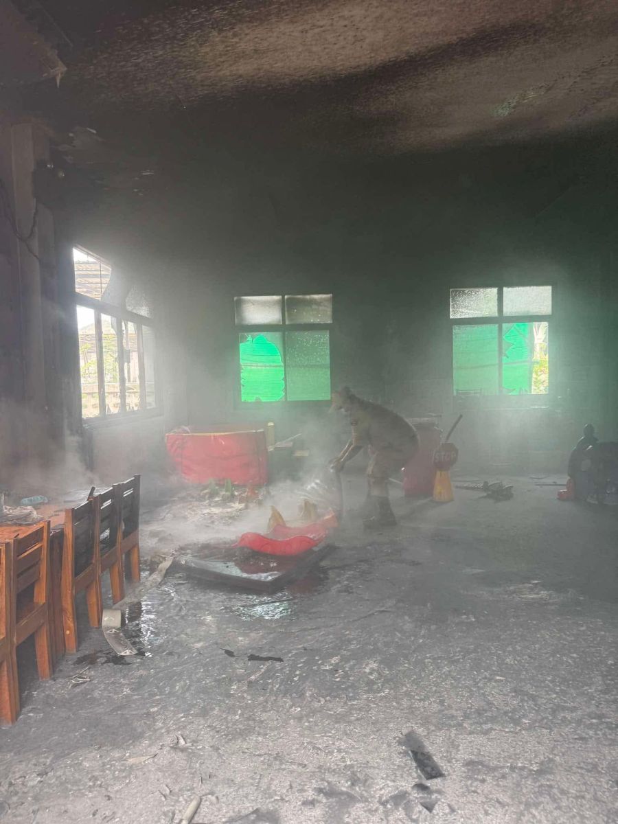 ที่เกิดเหตุพบเพลิงลุกไหม้อาคารเรียนชั้นเดียว มีกลุ่มควันออกมาจากตัวอาคาร เจ้าหน้าที่ดับเพลิงเข้าตรวจสอบพบเป็นเพลิงลุกไหม้สิ่งของภายในห้องเรียน จึงเข้า ระงับเหตุจนเพลิงสงบ ในที่เกิดเหตุไม่มีรายงานผู้ได้รับบาดเจ็บหรือเสียชีวิต เคราะห์ดีขณะเกิดเหตุไม่มีการเรียนการสอน