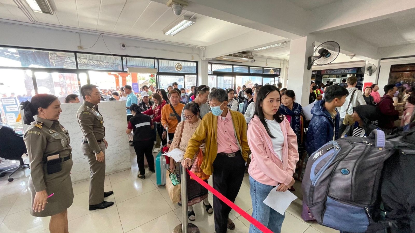 ทั้งนี้ ยังมีประชาชนจำนวนไม่น้อยแห่เดินทางไปท่องเที่ยว สปป.ลาว โดยใช้วิธีเดินทางมาที่กรุงเทพมหานคร เพื่อขึ้นรถไฟจากสถานีกลางกรุงเทพอภิวัฒน์ ไปยังสถานีเวียงจันทน์ (คำสะหวาด) สปป. ลาว โดยเส้นทางรถไฟสายนี้จะเปิดให้บริการไป-กลับ จำนวน 2 ขบวนต่อวัน ส่วนภาพรวมนักท่องเที่ยวที่เดินทางเข้ามาท่องเที่ยวในประเทศในช่วงเทศกาลปีใหม่นี้ พบว่ามีการเดินทางเข้ามาสูงถึง 140,000 รายต่อวัน สะท้อนภาพรวมของเศรษฐกิจที่มีแนวโน้มที่ดีขึ้น ทั้งนี้เจ้าหน้าที่ ตม. ทุกด่านยังคงทำงานทุกวันตลอดช่วงเทศกาล โดยมีการจัดกำลังเสริมเข้าไปเพื่อเร่งระบายประชาชนคนไทยและนักท่องเที่ยวให้รับความสะดวกอย่างเต็มที่