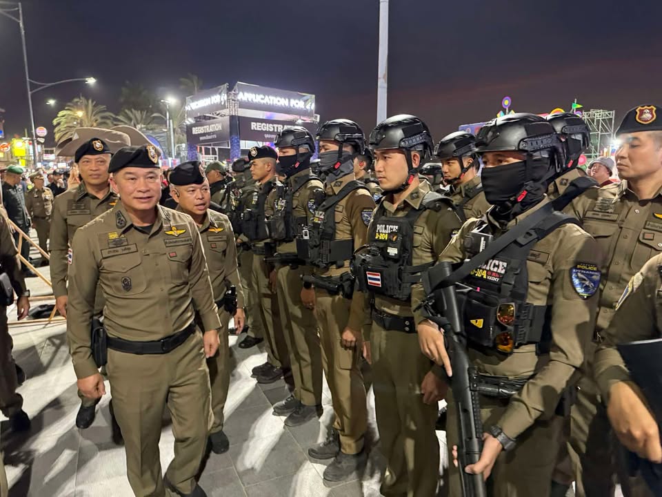 สำหรับการจัดงาน PATTAYA COUNTDOWN 2025 ซึ่งจะมีพื้นที่การจัดงาน บนชายหาดพัทยา จากหน้าโรงแรมฮาร์ดร็อก - แยกนิภาลอดจ์ เนื้อที่ 18,000 ตารางเมตร คาดว่าจะมีผู้เข้าร่วมกิจกรรมกว่า 23,000 คน ได้เตรียมพร้อมกำลังพลหน่วยร่วมปฏิบัติ ประกอบด้วย สภ.เมืองพัทยา, ภ.จว.ชลบุรี, ตำรวจท่องเที่ยว, อำเภอบางละมุง, ฝ่ายเทศกิจ, ฝ่ายรักษาความปลอดภัย และหน่วยงานอื่น ๆ รวม 611 นาย จัดชุดเคลื่อนที่เร็ว ภ.จว.ชลบุรี (ไดนามิก) หน่วยปฏิบัติการพิเศษ ภ.จว.ชลบุรี และหน่วยปฏิบัติการพิเศษ ภ.2 รวม 42 นาย จัดชุดสืบสวนนอกเครื่องแบบ 15 นาย ประจำจุดสูงข่ม 4 นาย และประกอบแผนจุดก้าวสกัดจับ 40 นาย เจ้าหน้าที่ EOD 4 นาย เพื่อตรวจพื้นที่จัดงานก่อนเริ่มงาน และประจำกองอำนวยการร่วม จนกว่างานจะเสร็จสิ้น มีการใช้กล้อง CCTV ในพื้นที่จัดงาน 16 ตัว รถโมบาย 1 คัน กล้องชายหาด 48 ตัว รวมกล้อง CCTV ทั้งหมดในพื้นที่ 5,061 ตัว พร้อมด้วยชุด Anti Drone บินโดรนตรวจปริมาณนักท่องเที่ยว การจราจร ตรวจจับโดรนไม่ได้รับอนุญาต และลักลอบจำหน่ายพลุ ประทัด ดอกไม้เพลิง 10 นาย เรือตรวจการรักษาความปลอดภัยทางน้ำ 8 ลำ พร้อมกำลัง 31 นาย นอกจากนี้ ยังมีมาตรการปฏิบัติรองรับเหตุวัตถุต้องสงสัย เหตุระเบิด เหตุอาวุธปืน เพลิงไหม้หรือวางเพลิง บุคคลก่อกวน อากาศยานไร้คนขับ (Drone) ต้องสงสัย ตลอดจนเหตุไฟฟ้าช็อต หม้อแปลงระเบิด และบุคคลวิกลจริต เจ้าหน้าที่ทุกฝ่ายพร้อมปฏิบัติ