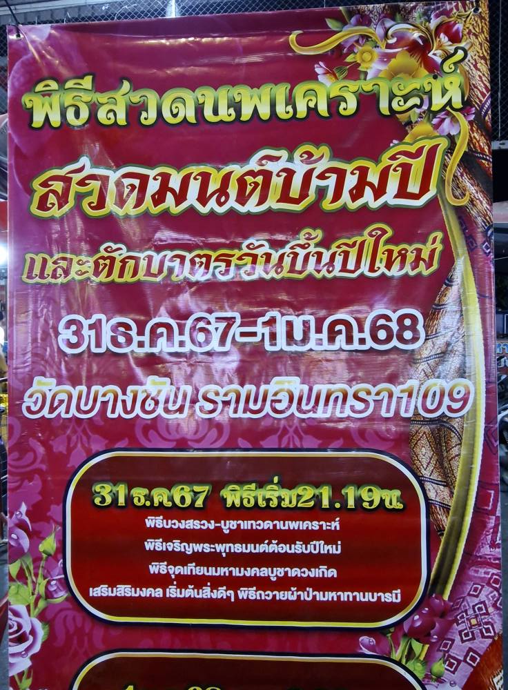 โดยทางวัดจัดให้มีการสวดมนต์ข้ามปี พิธีสวดนพเคราะห์ พิธีบวงสรวงบูชาเทวดานพเคราะห์ พิธจุดเทียนมหามงคลบูชาดวงเกิด และเชิญชวนทำบุญตักบาตรวันขึ้นปีใหม่ ช่วงเช้าของวันที่ 1 มกราคม 2568 ด้วย