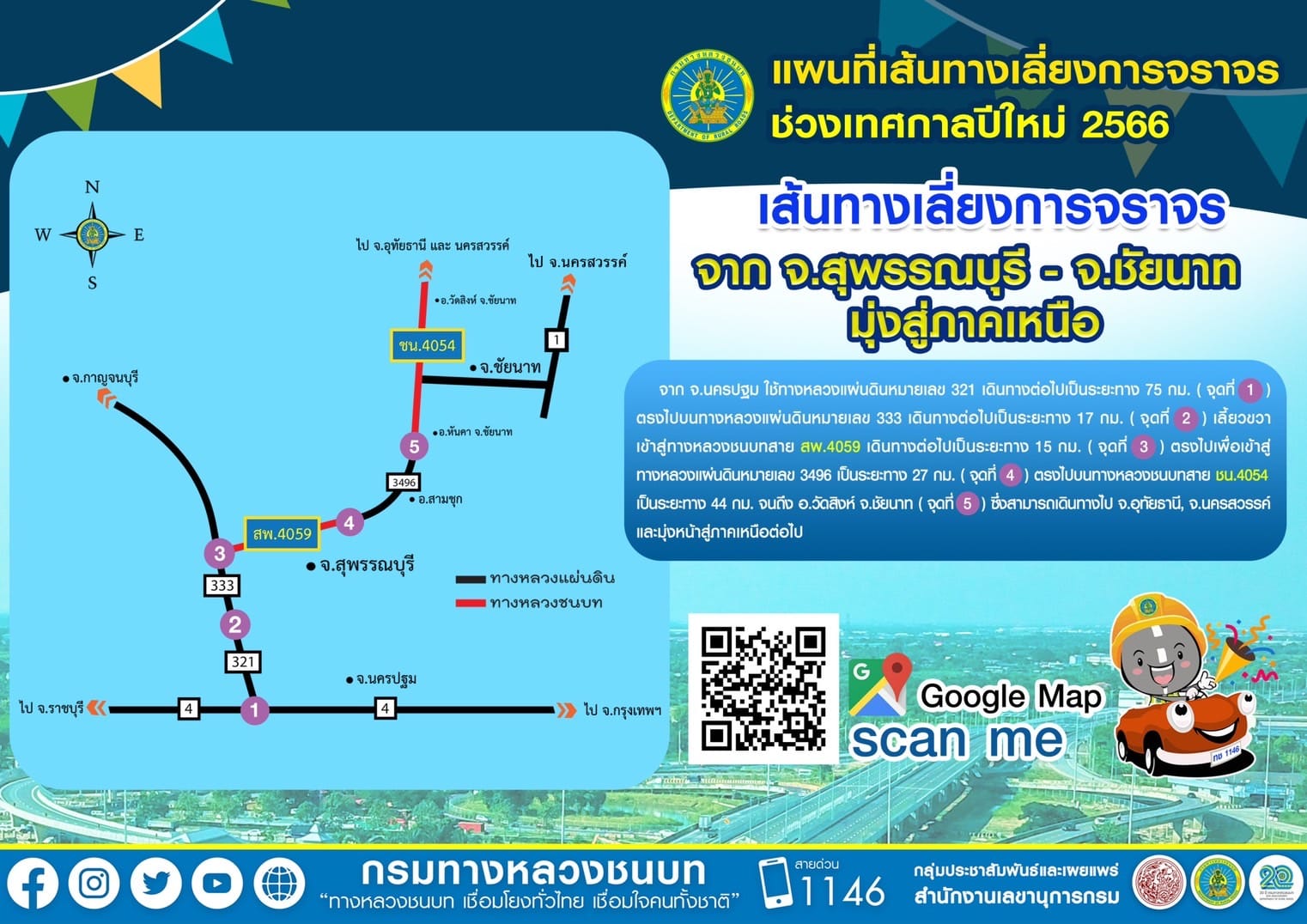 เส้นทางเลี่ยงการจราจรจังหวัดสุพรรณบุรีไปจังหวัดชัยนาท เข้าสู่ภาคเหนือ