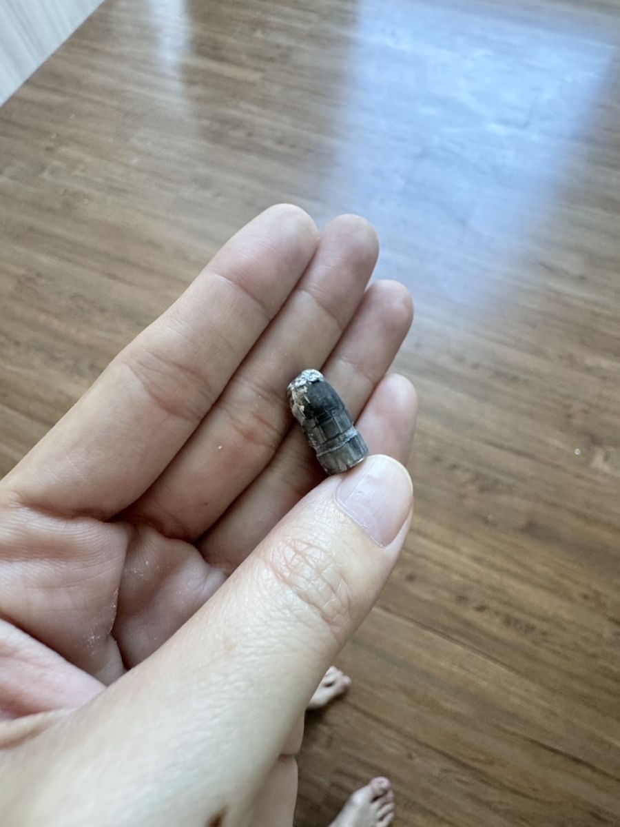 ผู้เสียหาย กล่าวว่า บ้านหลังนี้ตนเพิ่งซื้อเมื่อประมาณเดือน ส.ค.67 จากนัั้นได้จ้างช่างมาตกแต่งภายในและด้านนอก เพิ่งจะตกแต่งเสร็จเมื่อประมาณปลายเดือน ธ.ค. 67 จากนั้นตนได้เข้าไปดูเมื่อวันที่ 27 ธ.ค. 67 ซึ่งตนตรวจสอบบ้านทั้งหมดยังไม่พบว่ามีหัวกระสุนมาตกใส่ ตนจึงได้ตรวจรับงานและไม่ได้เข้าไปดูบ้านอีกเลย แต่ตนได้วางแผนว่านำเครื่องไฟฟ้าและเฟอร์นิเจอร์มาลงหลังปีใหม่ จนกระทั่งในวันนี้เมื่อตนไปบ้านเพื่อรอช่างมาติดตั้งเครื่องใช้ไฟฟ้า ช่วงประมาณ 13.00 น. ตนจึงพบว่าที่พื้นมีเศษปูนแตกตกอยู่ที่พื้น ทั้งๆ ที่ก่อนหน้านี้ตนได้ทำความสะอาดบ้านไปแล้ว เมื่อมองสำรวจขึ้นไปที่ฝ้าเพดานจุดที่เศษปูนหล่นจึงพบว่าฝ้าเป็นรู ก่อนจะมองสำรวจที่พื้นจึงพบหัวกระสุนตกอยู่ 1 นัด ตนจึงได้โทรแจ้งให้ทางเจ้าหน้าที่นิติบุคคลของหมู่บ้านเข้ามาช่วยดู ก่อนจะตัดสินใจนำหัวกระสุนปืนที่พบมาเข้าแจ้งความกับเจ้าหน้าที่ตำรวจ สภ.บางศรีเมือง