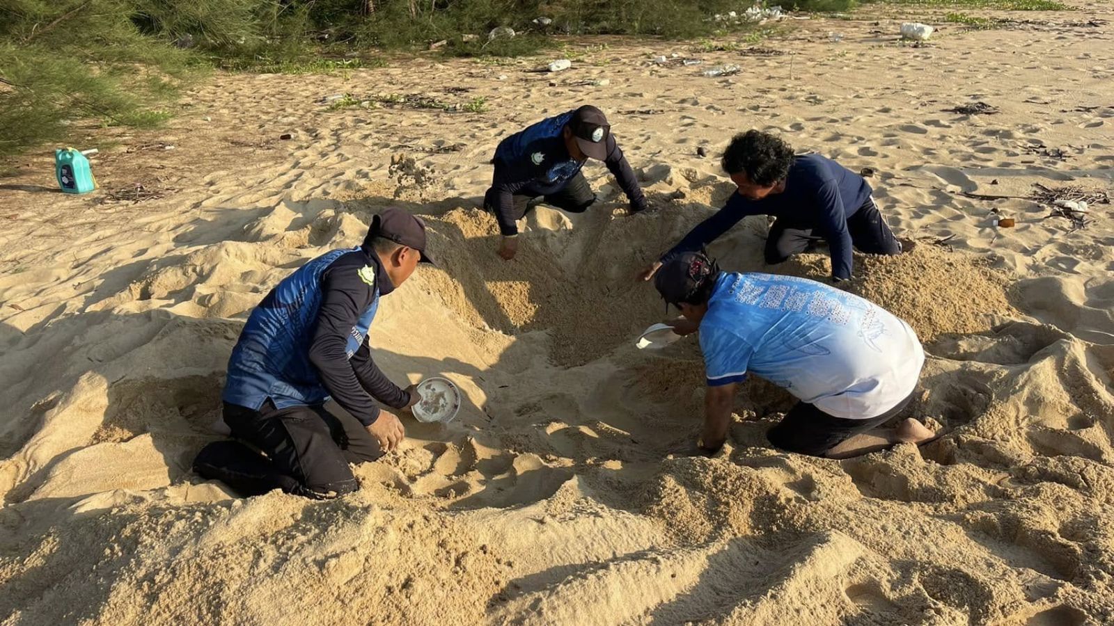 เจ้าหน้าที่จึงทำการย้ายไข่ พร้อมตรวจนับไข่ได้ทั้งหมด 127 ฟอง ไข่ดี 82 ฟอง ไข่ลม 44 ฟอง และพบไข่แตกในหลุม 1 ฟอง จากนั้นจึงนำไข่ดีมาขุดหลุมฟักบริเวณหาดคึกคัก จัดทำคอกชั่วคราวเพื่อป้องกันภัยคุกคามตามธรรมชาติ จากนี้ สทช.6 จะได้จัดเจ้าหน้าที่เฝ้าระวังดูแลหลุมฟักไข่เต่าจนกว่าลูกเต่าจะฟักและลงสู่ทะเลได้อย่างปลอดภัย ซึ่งจะใช้ระยะเวลาประมาณ 55-60 วัน พร้อมจะได้ประชาสัมพันธ์ให้ความรู้แก่ผู้ที่จะเข้ามาเยี่ยมชมหลุมฟักไข่เต่าต่อไป