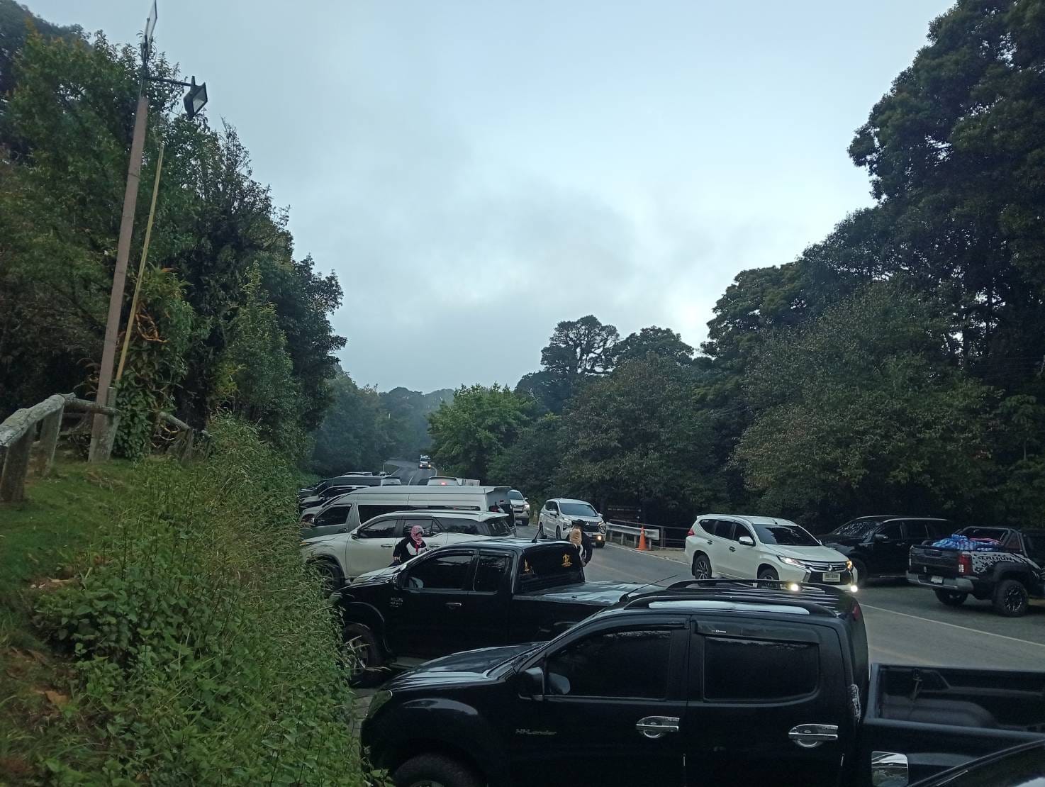 ในส่วนของบรรยากาศการท่องเที่ยวดอยอินทนนท์ โดยเฉพาะจุดชมวิวกิ่วแม่ปาน คึกคักไปด้วยนักท่องเที่ยวจำนวนมากที่มารอแสงแรกและขึ้นมาสัมผัสอากาศหนาว