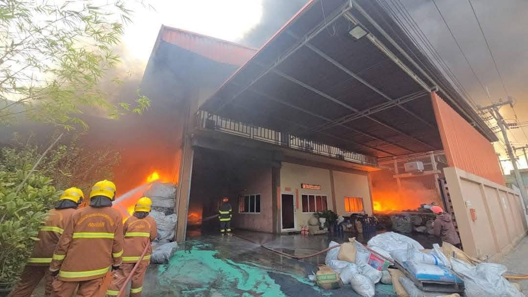สำหรับโรงงานต้นเพลิงนั้น มีลักษณะเป็นอาคารโกดังชั้นเดียว ตั้งอยู่บนเนื้อที่กว่า 1 ไร่ ภายในเป็นสถานที่เก็บพลาสติกเก่าจำนวนมากเพื่อนำมารีไซเคิลแล้วเข้าสู่กระบวนการผลิตเม็ดพลาสติก โดยในช่วงที่เกิดเหตุมีคนงานทำงานอยู่ด้านในเกือบ 10 คน โชคดีที่หนีออกมาได้ทั้งหมด ส่วนเพลิงที่โหมลุกไหม้อย่างรุนแรงได้ส่งผลทำให้อาคารโรงงานถูกเผาวอดทั้งหมด นอกจากนี้ยังมีโรงงานข้างเคียงอีก 2 แห่งที่ตั้งอยู่ติดกันได้รับความเสียหายบางส่วน จากการตรวจสอบเบื้องต้น ไม่พบผู้ได้รับบาดเจ็บและเสียชีวิต มูลค่าความเสียหายอยู่ระหว่างการตรวจสอบของหน่วยงานที่เกี่ยวข้อง คาดว่าไม่ต่ำกว่า 10 ล้านบาท