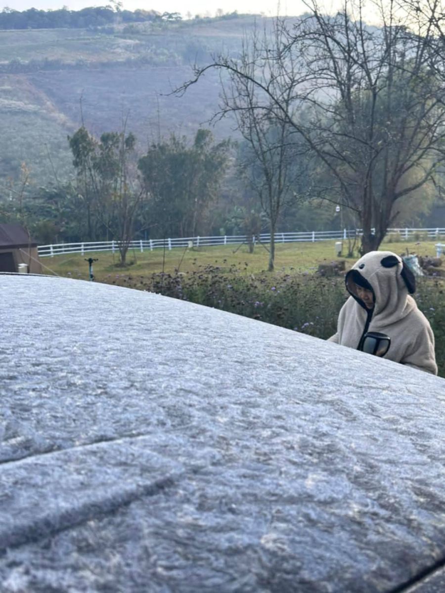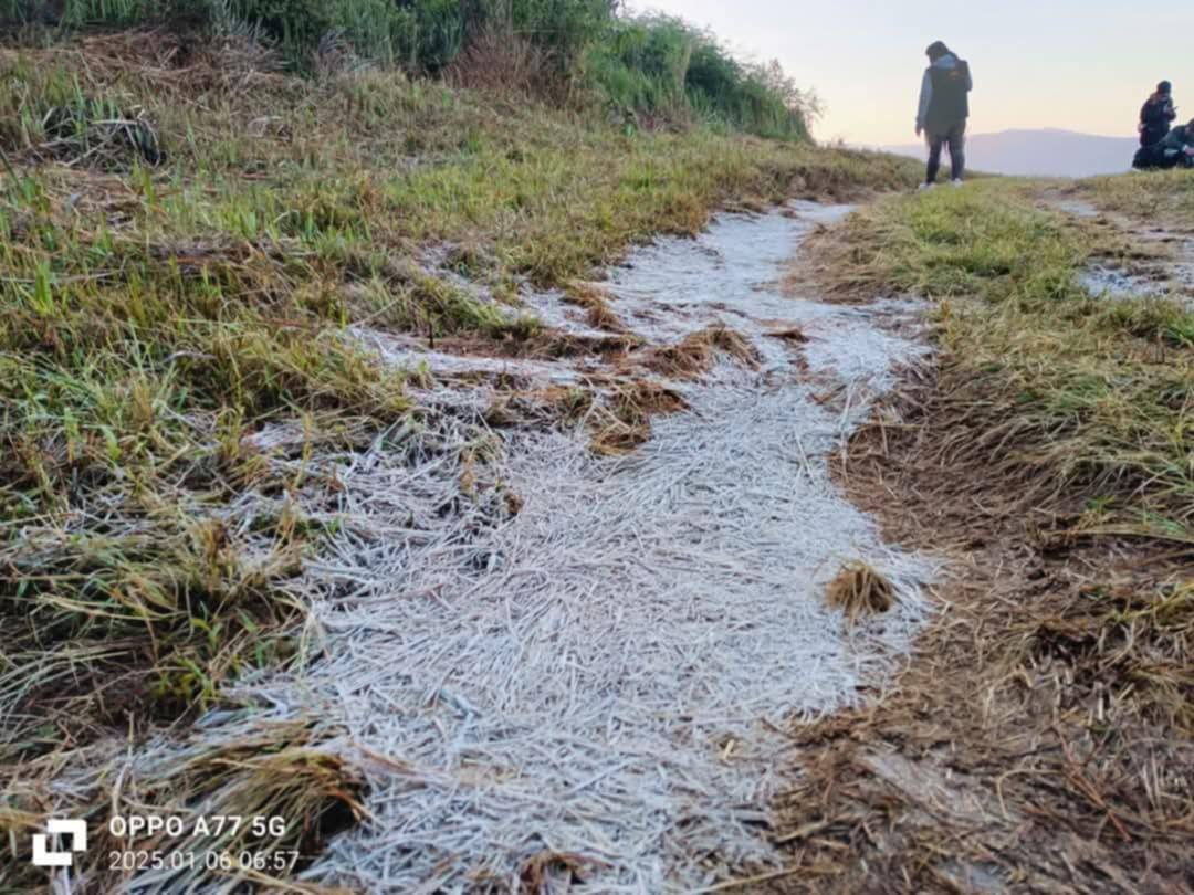 เช้าวันนี้ 6 ม.ค.68 ผู้สื่อข่าวรายงานว่า ที่บ้านใหม่ร่องกล้า หมู่ 10 ต.เนินเพิ่ม อ.นครไทย จ.พิษณุโลก ซึ่งเป็นหมู่บ้านใจกลางอุทยานแห่งชาติภูหินร่องกล้า วันนี้สภาพอากาศหนาวมาก อุณหภูมิทั่วไป 3 องศาเซลเซียล อุณหภูมิยอดหญ้า 1 องศา ทำให้เกิดเหมยขาบ หรือ แม่คะนิ้ง หรือ น้ำค้างแข็งยอดหญ้า ถือว่าเป็นปรากฎการณ์แม่คะนิ้งแรกของปีนี้สำหรับที่จังหวัดพิษณุโลก โดยแม่คะนิ้งพบได้ตามยอดหญ้า บนหลังคารถ บนหลังคาหญ้าแฝก บนกะทะหมูกะทำและบนโต๊ะโซฟา ที่อยู่นอกบ้าน ทำให้ชาวบ้านบ้านใหม่ร่องกล้า ต่างนำโทรศัพท์มือมือถือ มาถ่ายภาพเก็บไว้