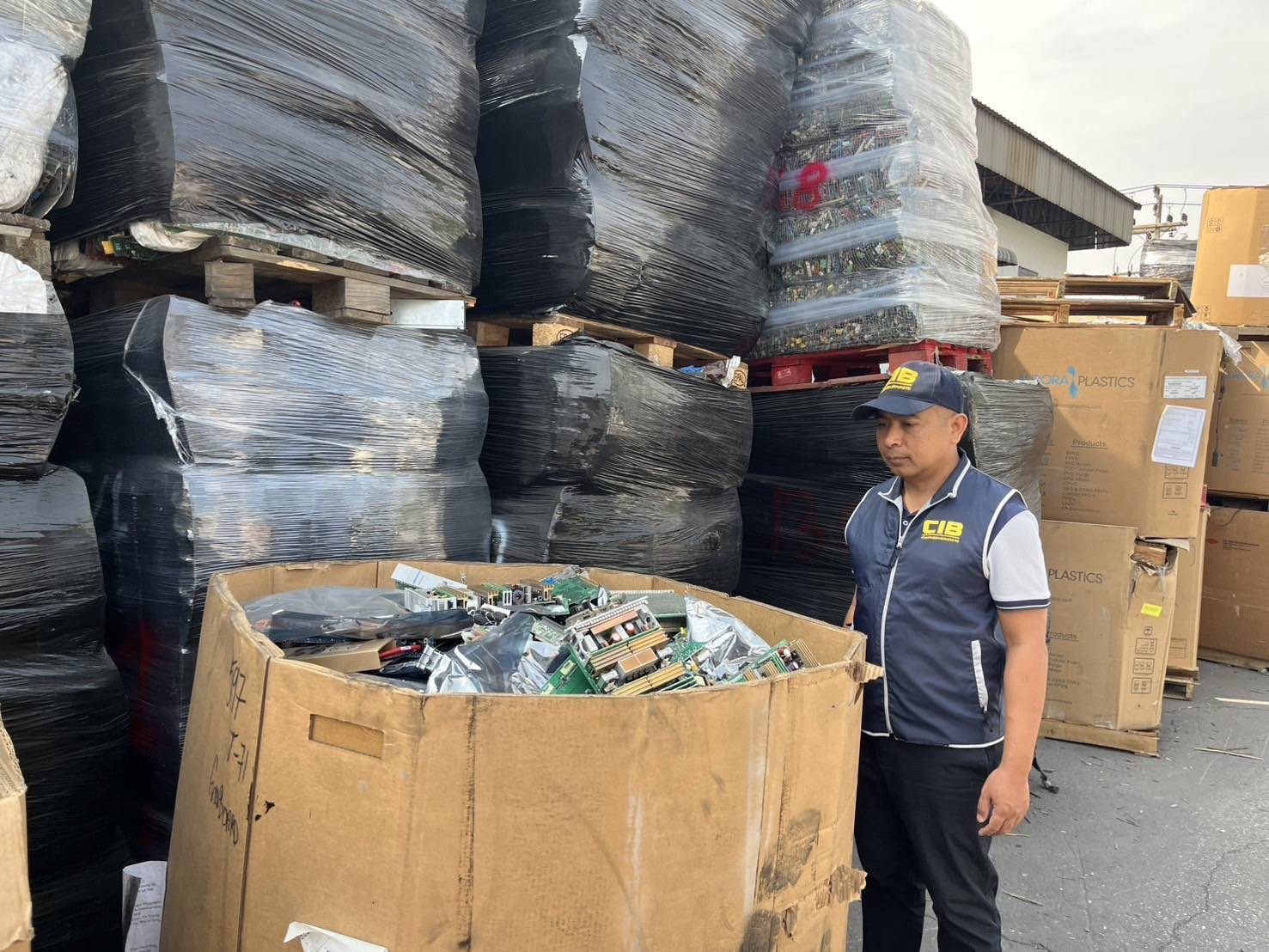 ต่อมา เจ้าหน้าที่ตำรวจ กก.5 บก.ปทส.จึงได้ลงพื้นที่ร่วมกับทางเจ้าหน้าที่อุตสาหกรรมและหน่วยงาน ที่เกี่ยวข้องเข้าทำการตรวจสอบบริษัทรีไซเคิลดังกล่าว เมื่อไปถึง พบชิ้นส่วนของอุปกรณ์ไฟฟ้าและแผงวงจรอิเล็กทรอนิกส์จำนวนมากวางกองกระจายอยู่เต็มพื้นที่ จากการสอบถามพนักงานทราบว่า เจ้าของเป็นคนจีน ชื่อนายจาง ขณะนี้อยู่ต่างจังหวัด นอกจากนี้ตรวจพบชิ้นส่วนที่มีลักษณะเช่นเดียวกับที่ตรวจยึดได้ ที่ จ.ปราจีนบุรี