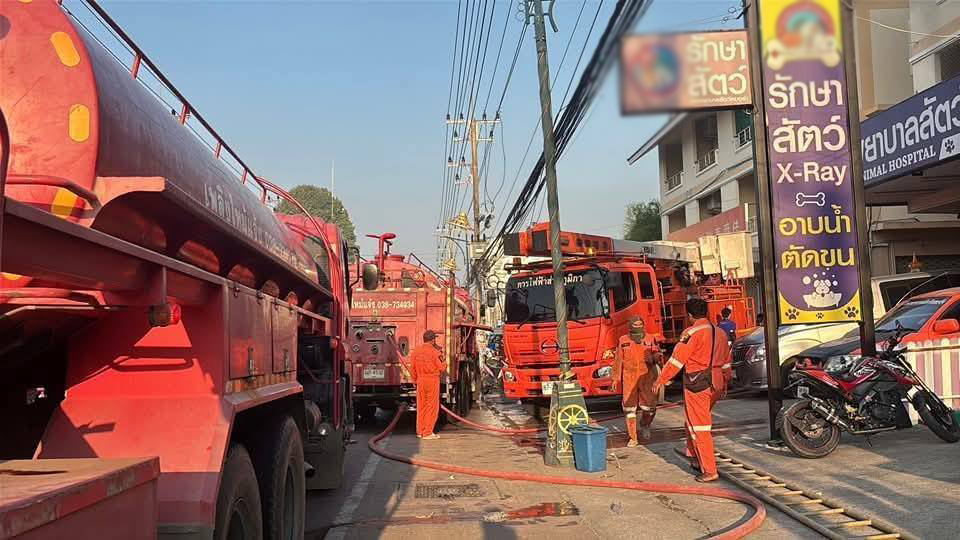 ไฟไหม้โรงพยาบาลสัตว์ หมอ-พนักงาน-สัตว์ ติดภายในกู้ภัยช่วยเหลือรอด หลังเพลิงสงบพบน้องแมวสำลักควันดับ 2 ตัว จ.ชลบุรี