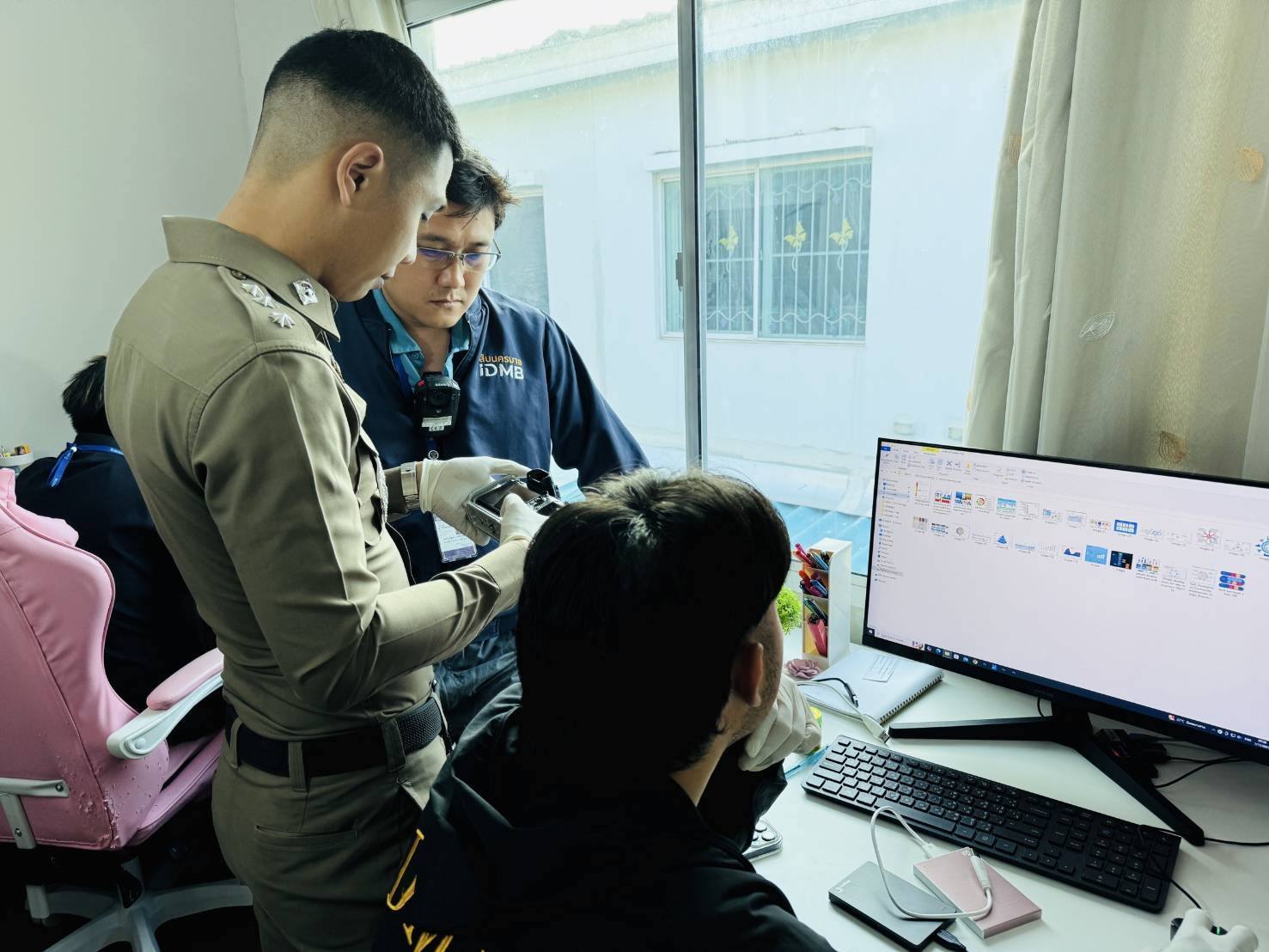 จากนั้นเจ้าหน้าที่ตำรวจจึงได้เดินทางไปตรวจสอบอีกห้องหนึ่งภายในชั้นเดียวกันซึ่งเป็นห้องทำงานพบชุดคอมพิวเตอร์ และ อุปกรณ์ จำนวน 1 ชุด อยู่ภายในห้องเจ้าหน้าที่จึงได้ดำเนินการตรวจสอบโทรศัพท์ของนายธอ และอุปกรณ์ดังกล่าว