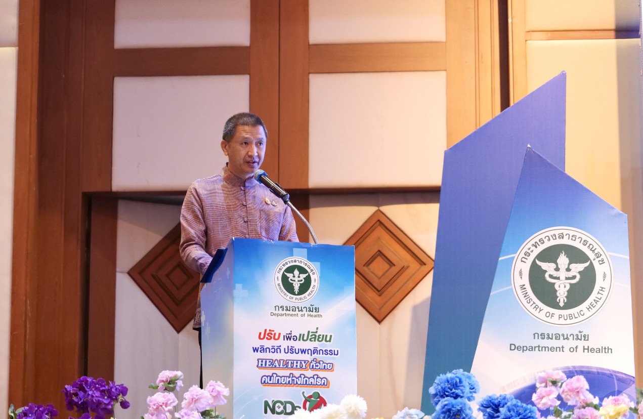 “การขับเคลื่อนนโยบายคนไทยห่างไกลโรค NCDs ถือเป็นวาระแห่งชาติ เพื่อให้เกิดผลสัมฤทธิ์ในเชิงประจักษ์ และเป็นประโยชน์กับประชาชน กระทรวงสาธารณสุข ผลักดันนโยบายดังกล่าว ภายใต้แนวคิดสุขภาพหนึ่งเดียว บูรณาการความเชื่อมโยงระหว่างสุขภาพของคน สัตว์ สิ่งแวดล้อม เข้าด้วยกัน เพื่อเสริมสร้างความเข้มแข็งด้านการส่งเสริมสุขภาพ รวมทั้ง การพัฒนาอนามัยสิ่งแวดล้อมเพื่อให้คนไทยอยู่ในสิ่งแวดล้อมที่ดี อาทิ การพัฒนาน้ำประปาหมู่บ้าน ให้สะอาด ปลอดภัย ได้มาตรฐาน เทียบเท่าน้ำประปาในเมือง การขับเคลื่อนเมืองสุขภาพดี Green & Clean Hospital Challenge การจัดการสิ่งปฏิกูลอย่าปลอดภัย เป็นต้น โดยเน้นการยกระดับการผสานพลังภาคีเครือข่าย เพื่อให้บรรลุเป้าหมาย ประชาชนมีสุขภาพแข็งแรงทั้งกาย ใจ และมีความมั่นคงทางสุขภาพ เกิดการพัฒนาประเทศอย่างยั่งยืน” รัฐมนตรีช่วยว่าการกระทรวงสาธารณสุข กล่าว