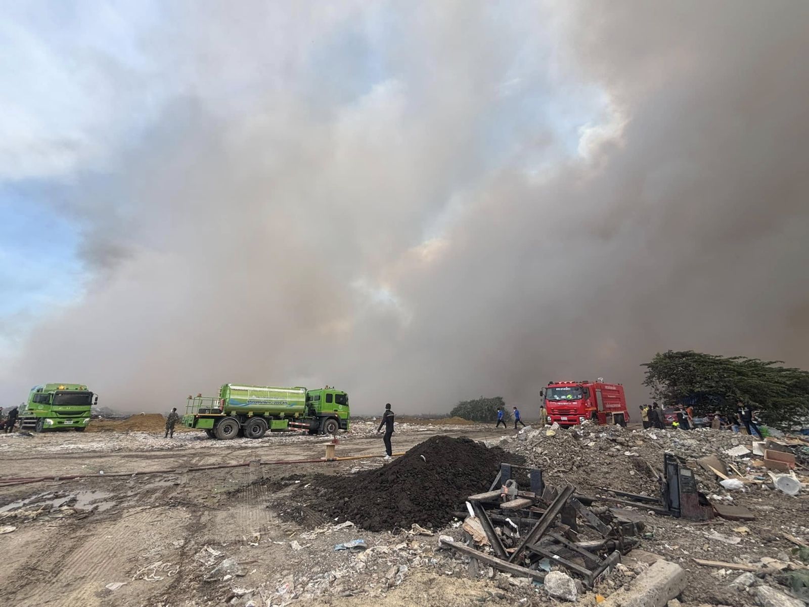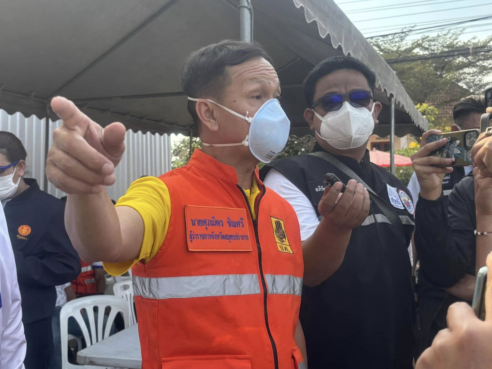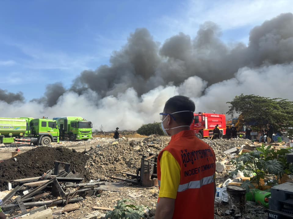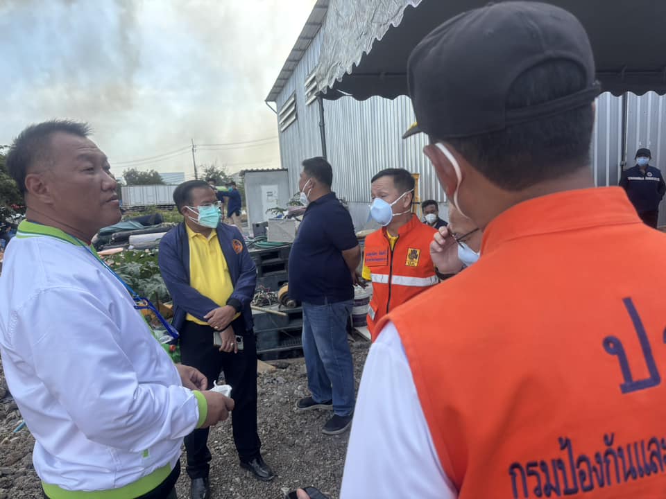 ผู้ว่าราชการจังหวัดสมุทรปราการ พร้อมหน่วยงานที่เกี่ยวข้องลงพื้นที่จุดเกิดเหตุเพลิงไหม้ในบ่อขยะบนที่ดินว่างเปล่าของเอกชน ติดตามความคืบหน้าและบัญชาการการดับเพลิง