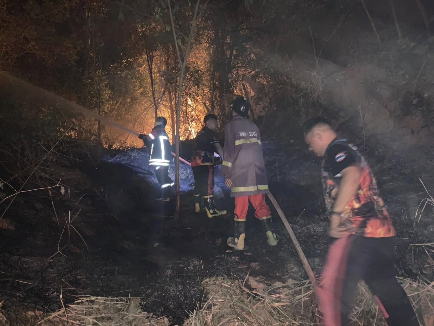 ต่อมาในช่วงกลางดึกวันเดียวกัน นายอนุศักดิ์ พิริยอมร นายอำเภอสัตหีบ จังหวัดชลบุรี ได้ลงพื้นที่ติดตามสถานการณ์เพลิงไหม้ที่ยังลุกลามไม่หยุด โดยมี นางธัญญพัทร์ อัครพุทธาทิพย์ รองนายกเทศมนตรีตำบลเกล็ดแก้ว พร้อมเจ้าหน้าที่กองทัพเรือ ร่วมกันจัดตั้งศูนย์บัญชาการ เหตุการณ์ดับไฟในตอนนี้ไฟเริ่มลดลงโดยมีกำลัง เจ้าหน้าที่ดับเพลิง จากฐานทัพเรือสัตหีบ และ เทศบาลตำบลเกล็ดแก้ว ใช้สายยางเดินเท้า เข้าไปดับไฟด้านบนเขา จนแสงเพลิงเริ่มสงบลง แต่ยังการปะทุอยู่บางจุด ที่เจ้าหน้าที่เดินเท้าเข้าไม่ถึง
