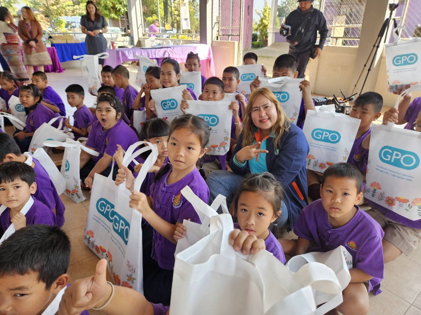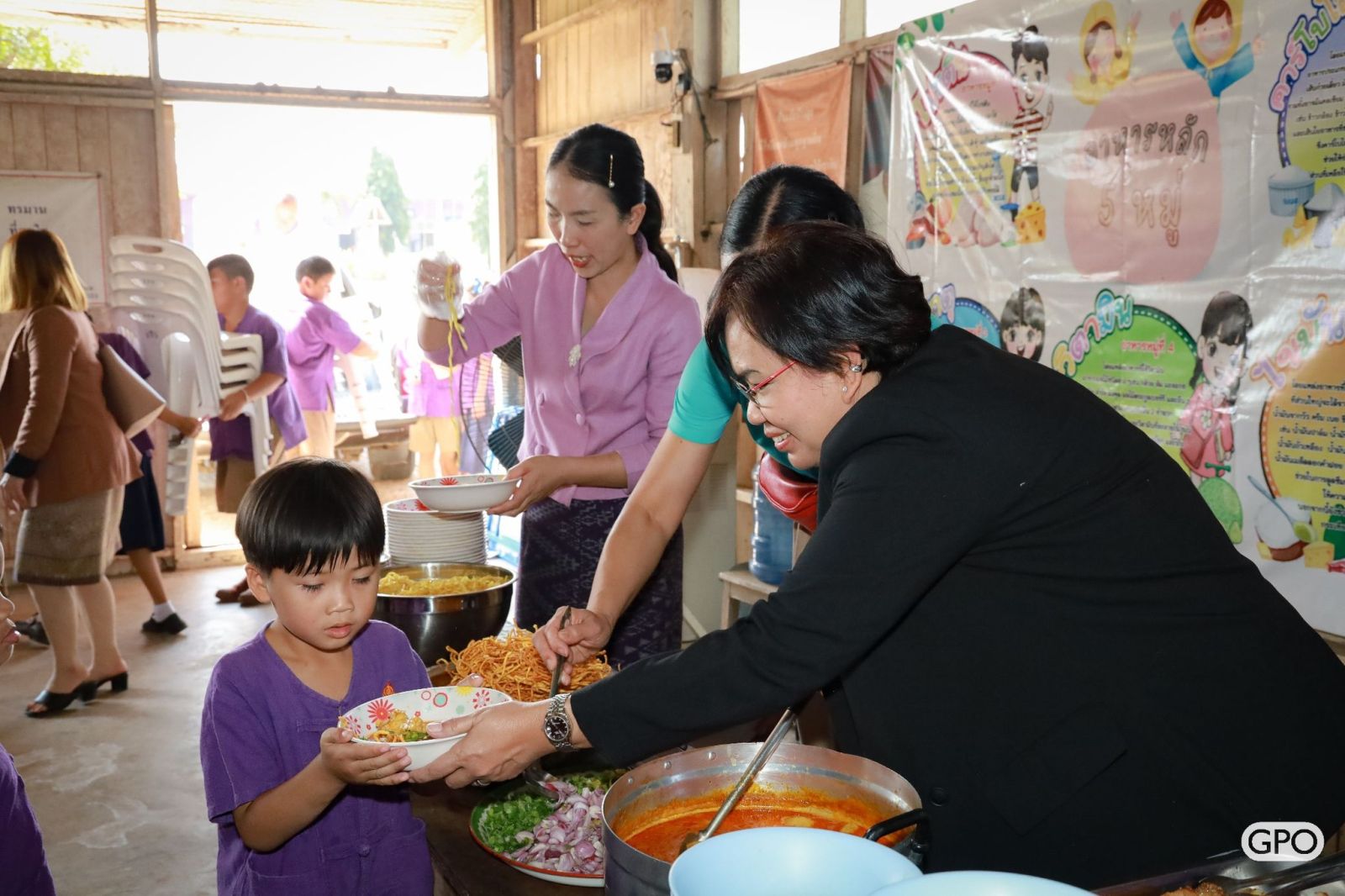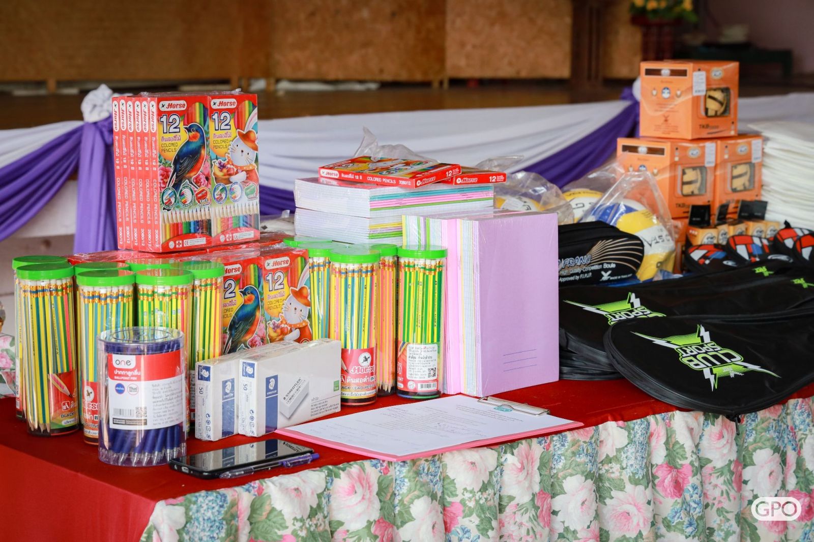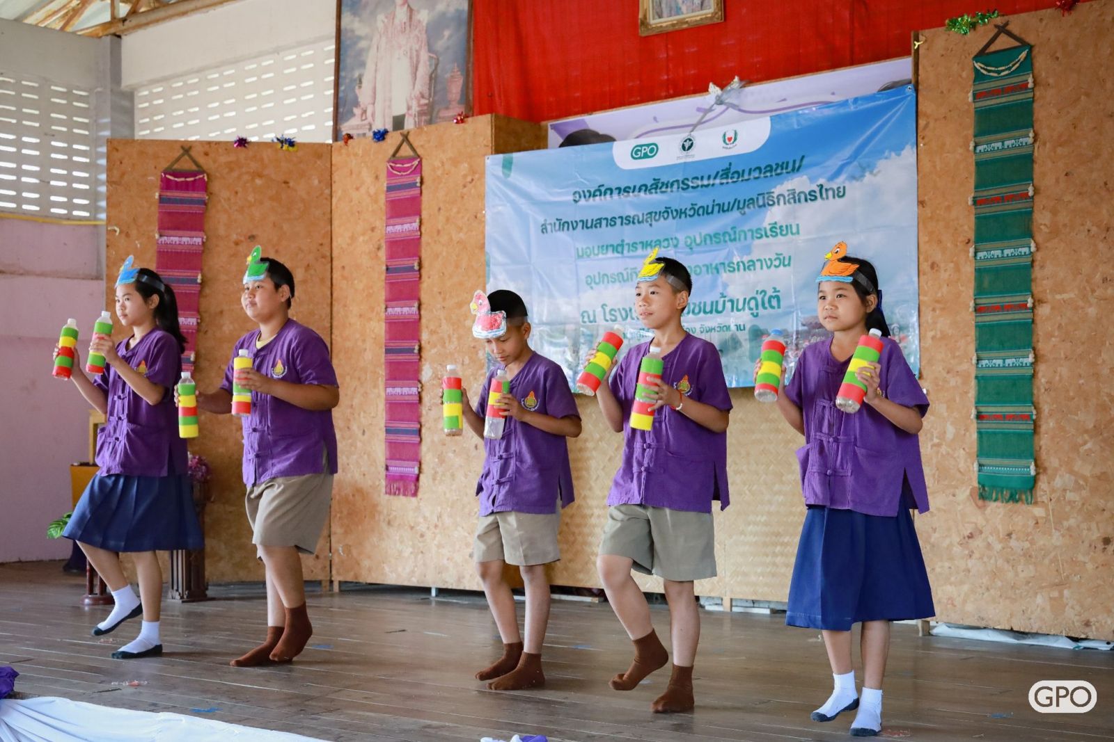 องค์การเภสัชกรรม ร่วมกับสื่อมวลชน และภาคีเครือข่าย ลงพื้นที่มอบยาตำราหลวง ตู้ยาพร้อมยา อุปกรณ์ การเรียน อุปกรณ์กีฬา และเลี้ยงอาหารกลางวัน นักเรียนโรงเรียนชุมชนบ้านดู่ใต้ จังหวัดน่าน