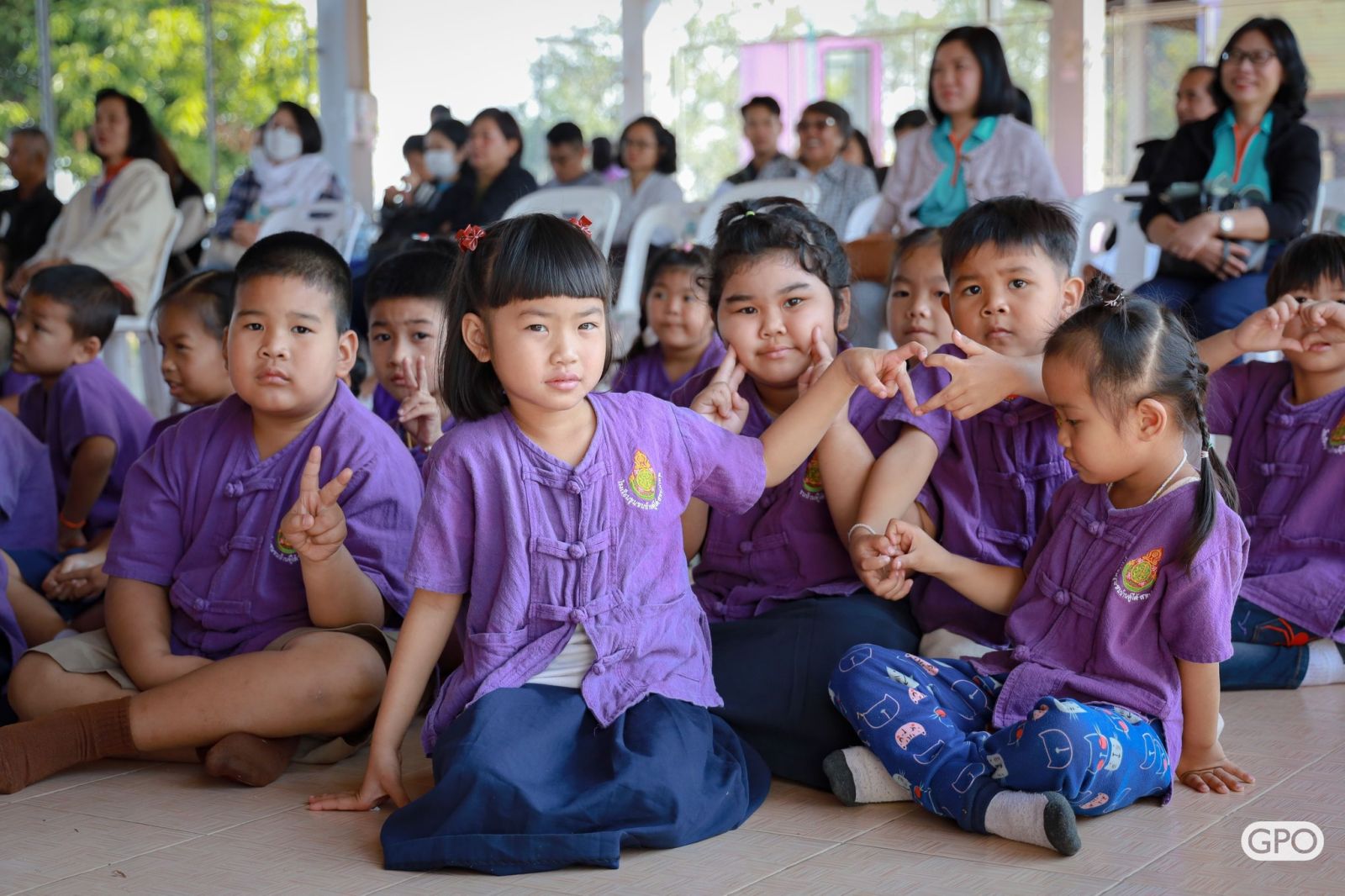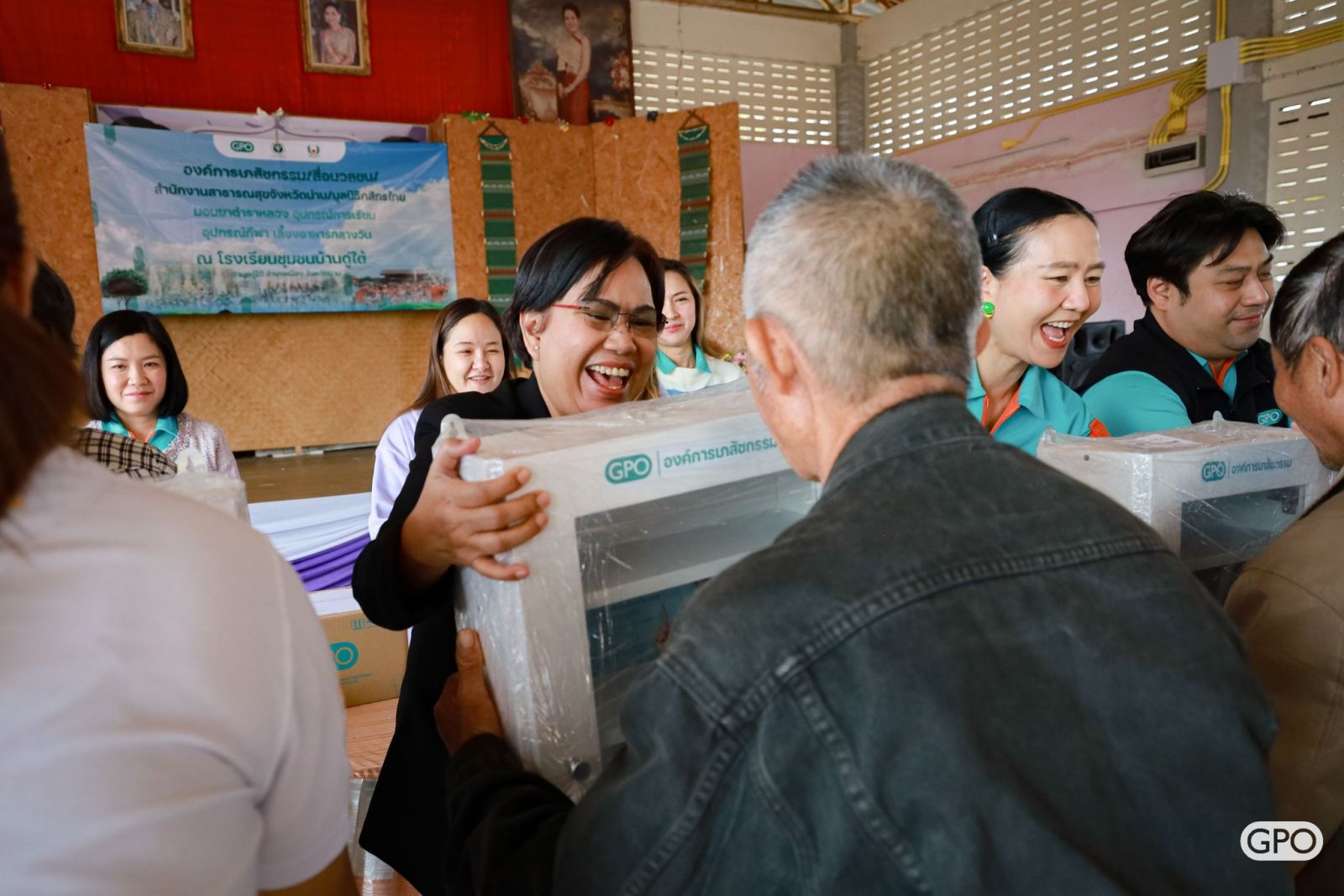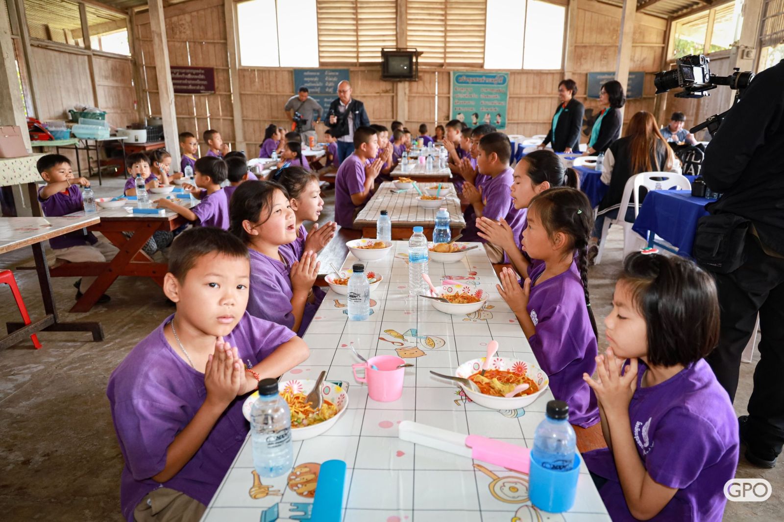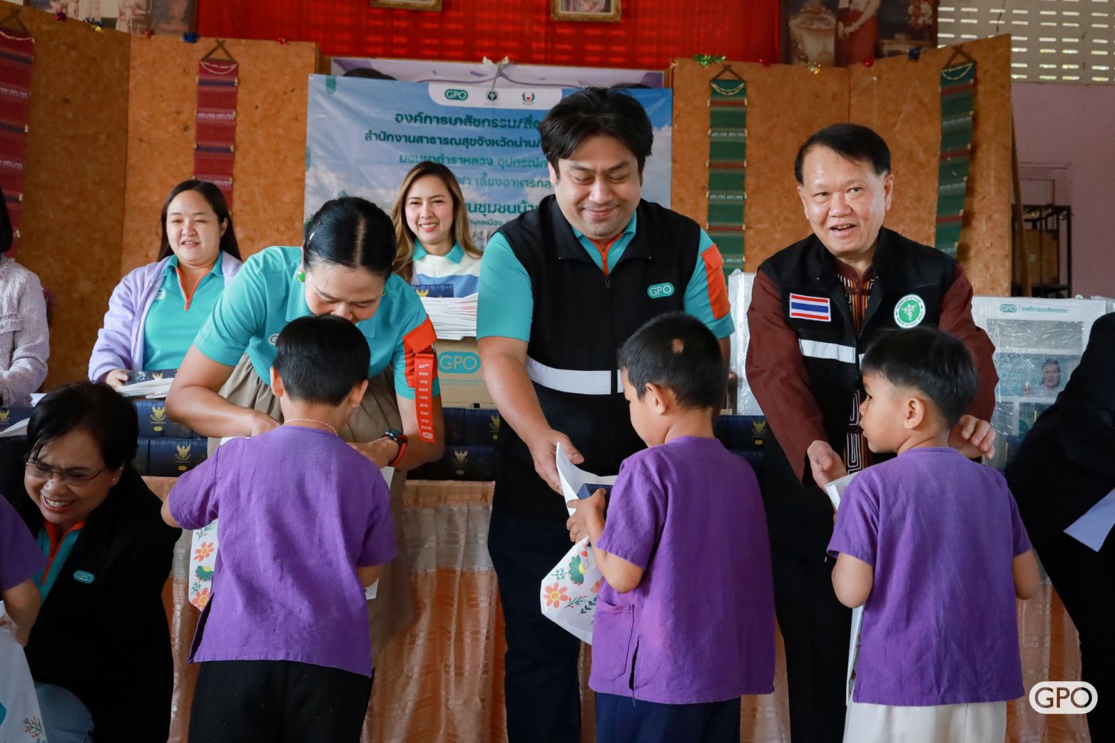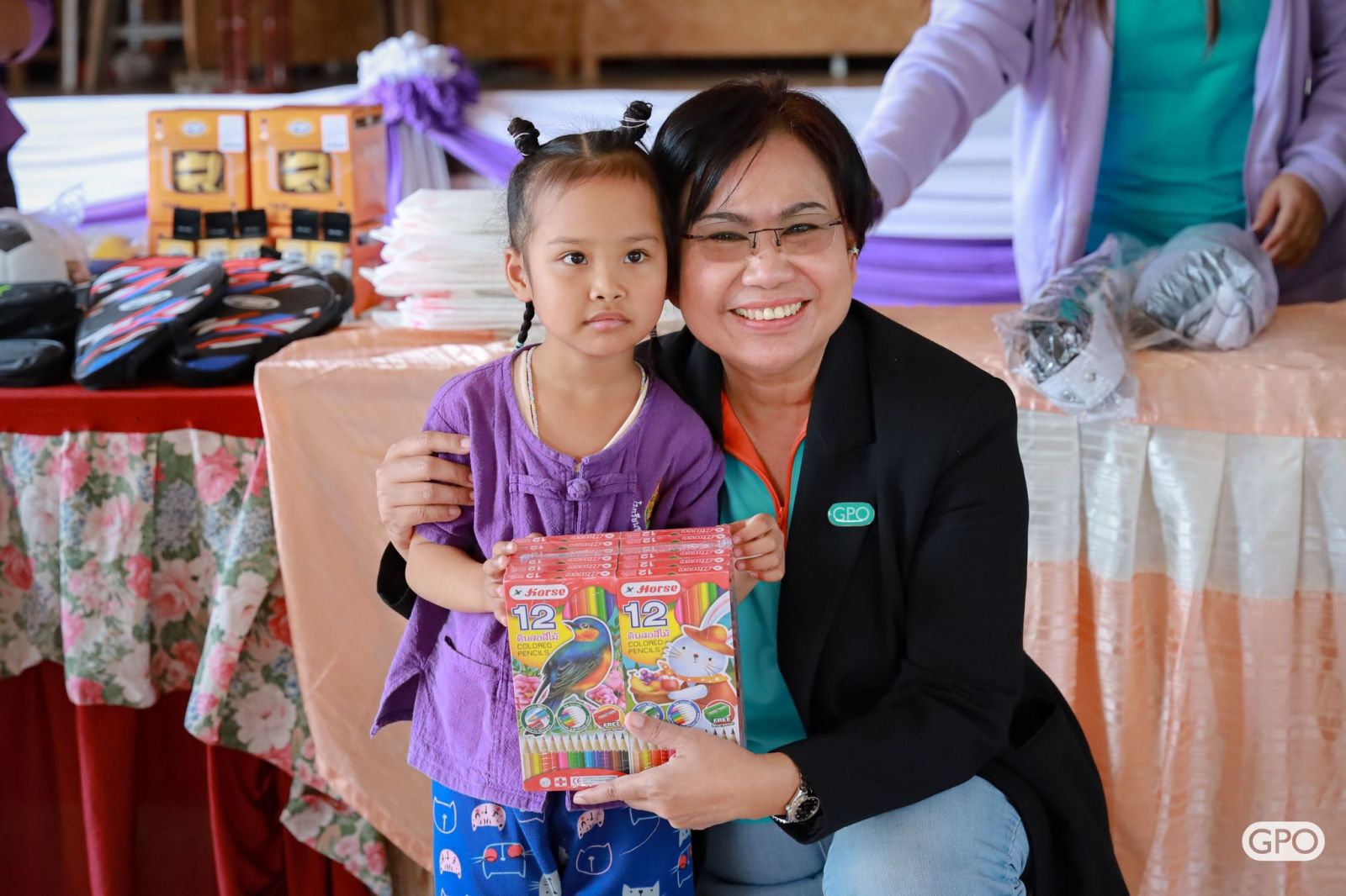 องค์การเภสัชกรรม ร่วมกับสื่อมวลชน และภาคีเครือข่าย ลงพื้นที่มอบยาตำราหลวง ตู้ยาพร้อมยา อุปกรณ์ การเรียน อุปกรณ์กีฬา และเลี้ยงอาหารกลางวัน นักเรียนโรงเรียนชุมชนบ้านดู่ใต้ จังหวัดน่าน