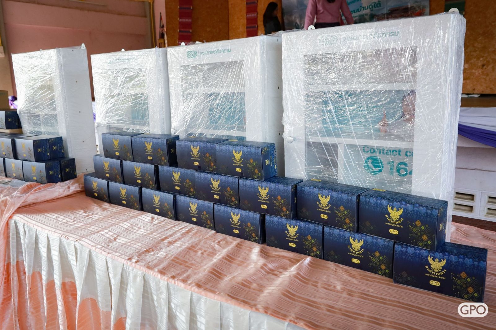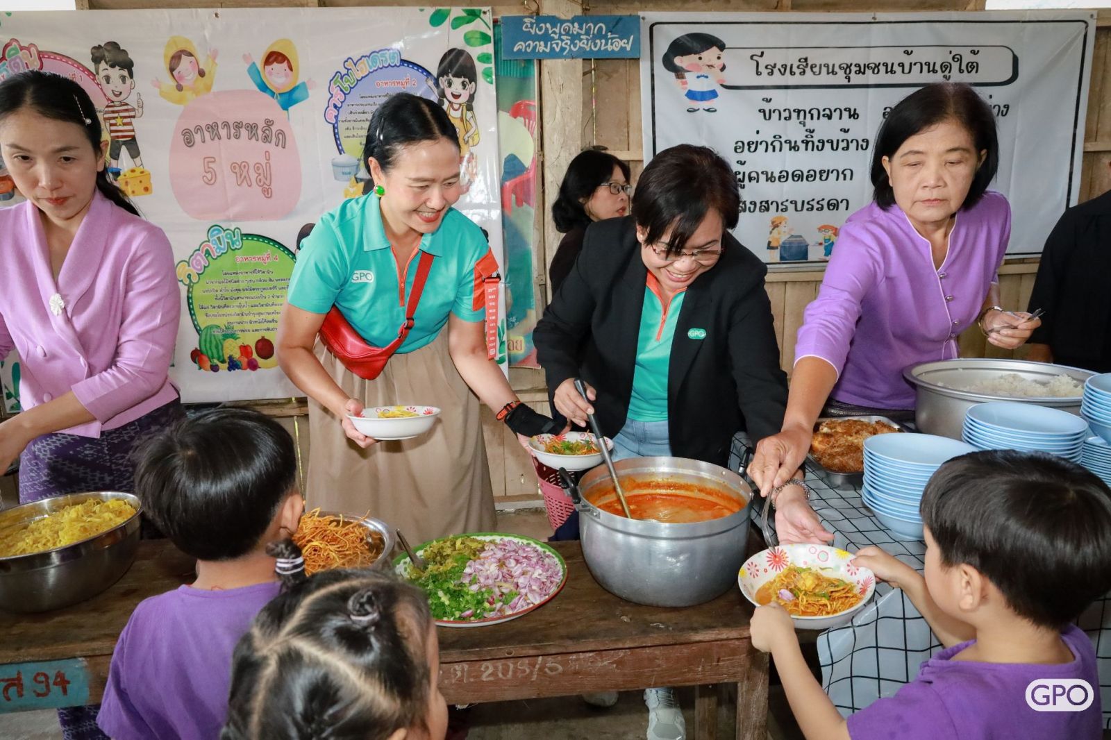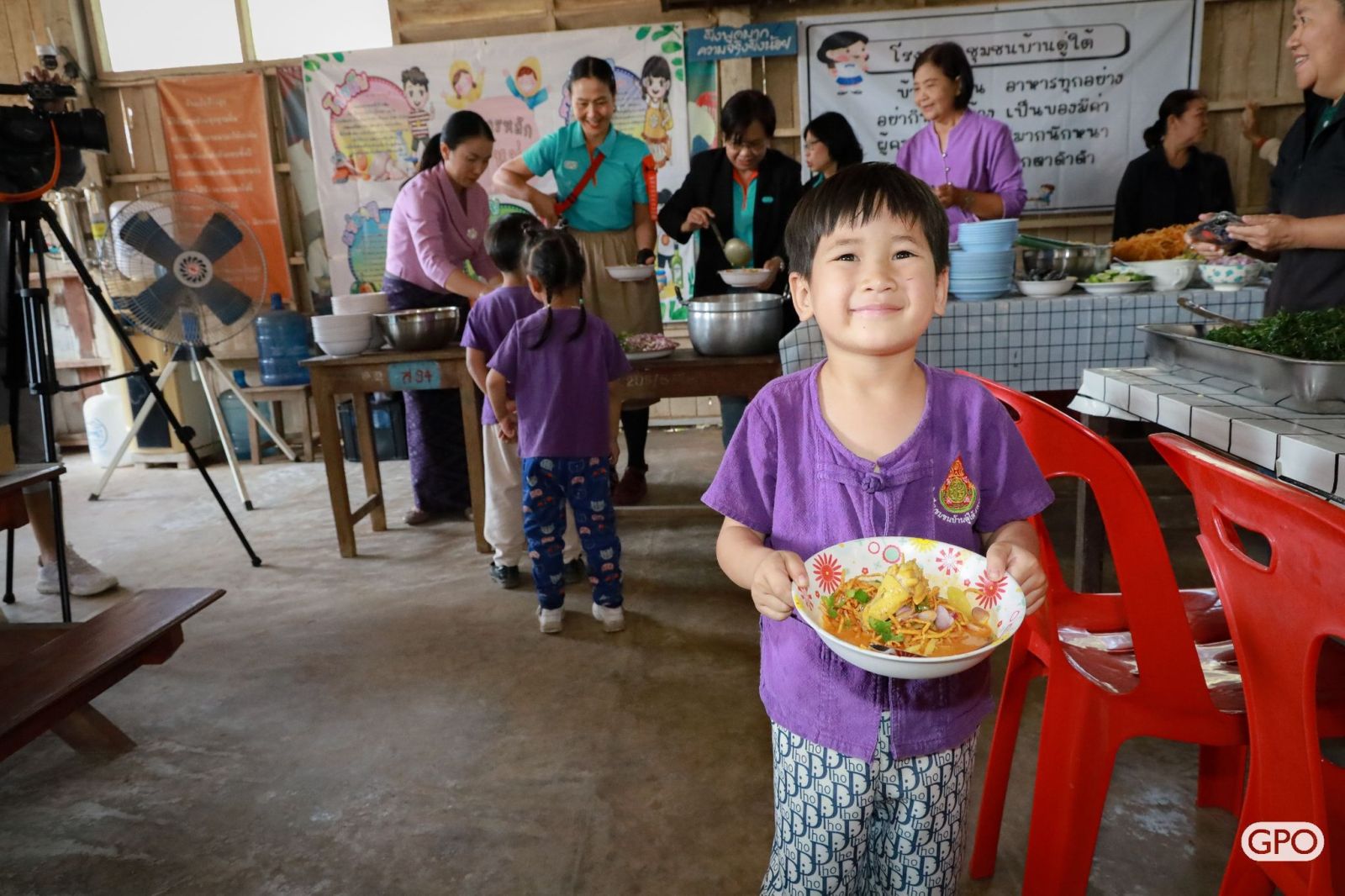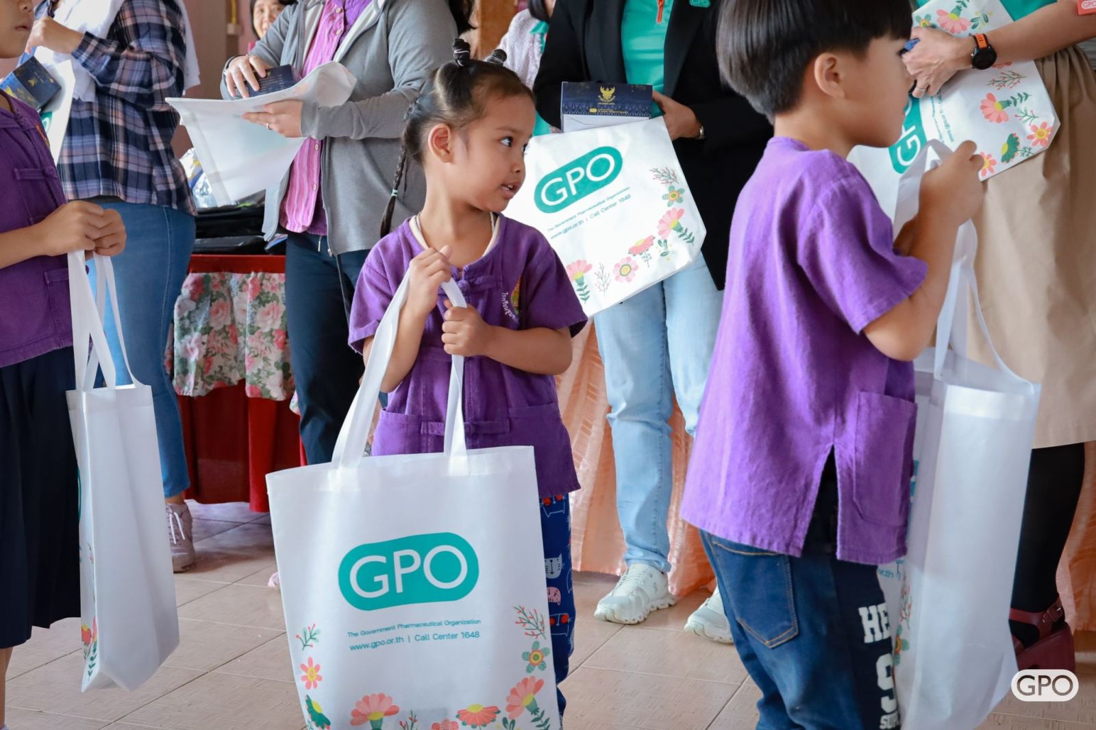 องค์การเภสัชกรรม ร่วมกับสื่อมวลชน และภาคีเครือข่าย ลงพื้นที่มอบยาตำราหลวง ตู้ยาพร้อมยา อุปกรณ์ การเรียน อุปกรณ์กีฬา และเลี้ยงอาหารกลางวัน นักเรียนโรงเรียนชุมชนบ้านดู่ใต้ จังหวัดน่าน