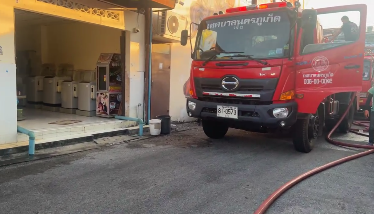 เพลิงไหม้ห้องแถวในเขตเทศบาลนครภูเก็ต เจ้าหน้าที่พร้อมด้วยรถดับเพลิง ระดมหัวฉีดน้ำเข้าระงับเหตุ จนควบคุมและเพลิงสงบในเวลาต่อมา