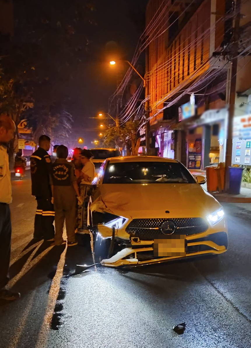 รถนั่งส่วนบุคคลชนกับรถจักรยานยนต์ มีผู้เสียชีวิต 2 รายกลางถนนเสนานิคม 1