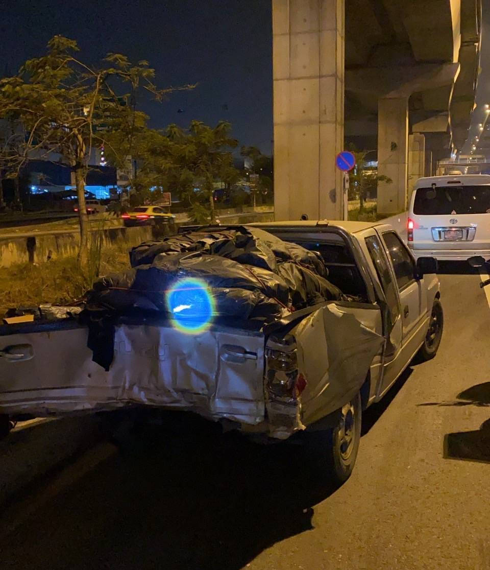 รถกระบะชนกัน ริมถนนเทพรัตน และมีผู้เสียชีวิต 1 ราย จ.สมุทรปราการ