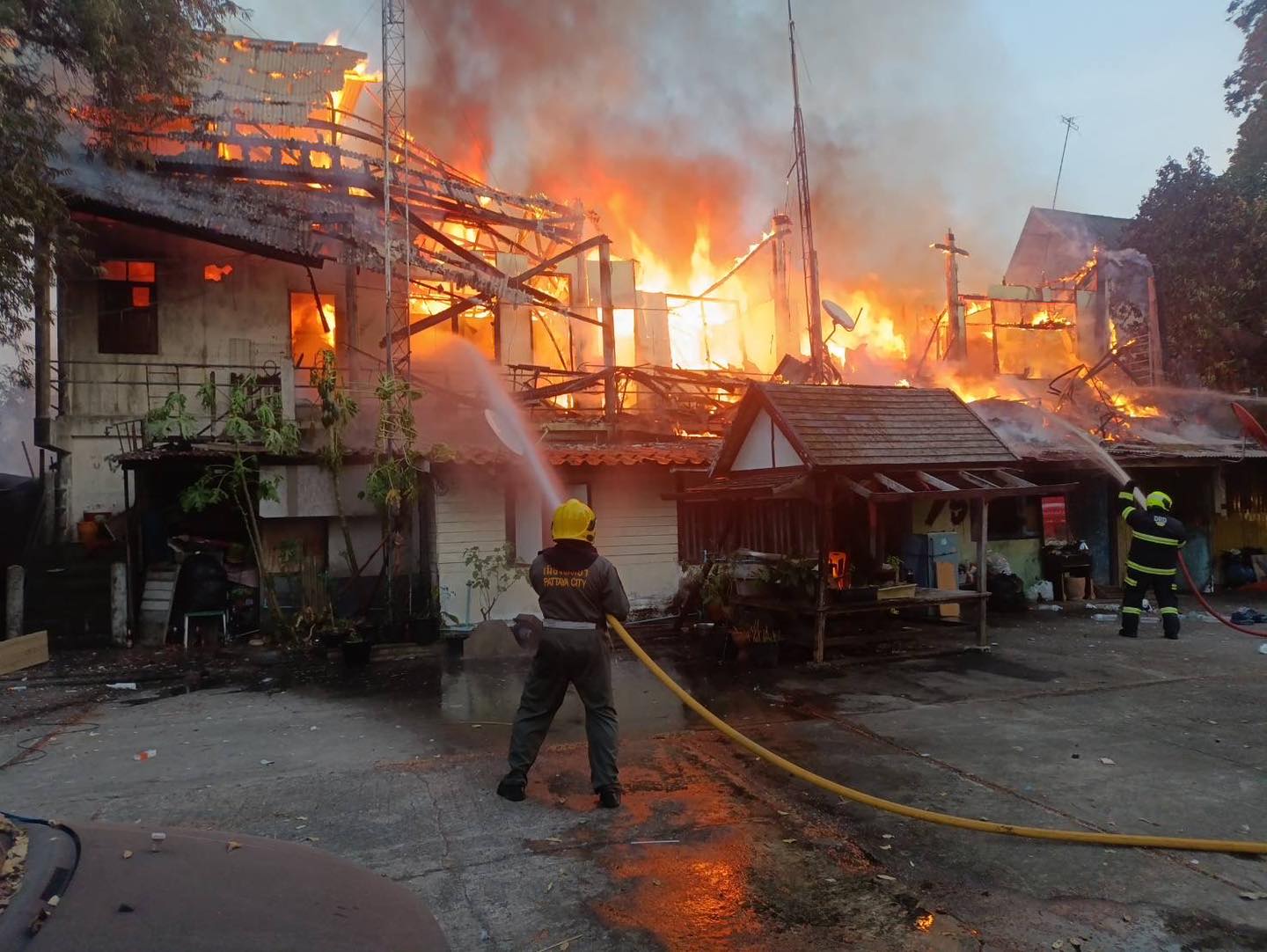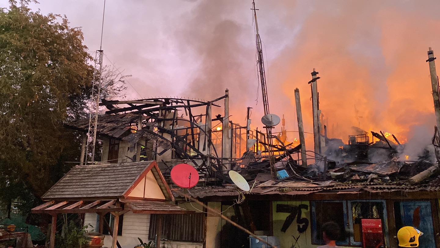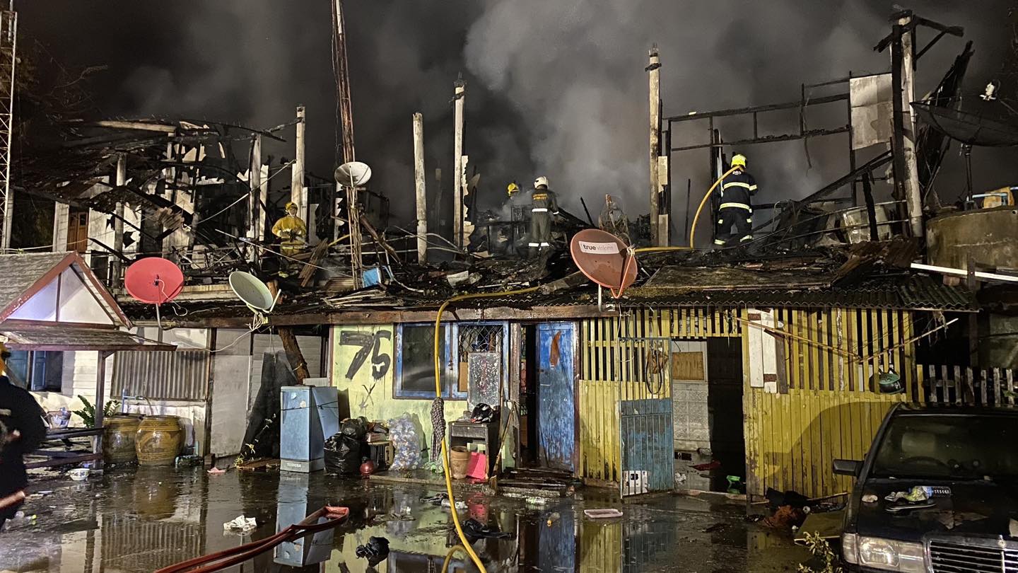 ไฟไหม้บ้านเรือนประชาชน แล้วลุกลามเผาวอด 5 หลัง จ.ชลบุรี