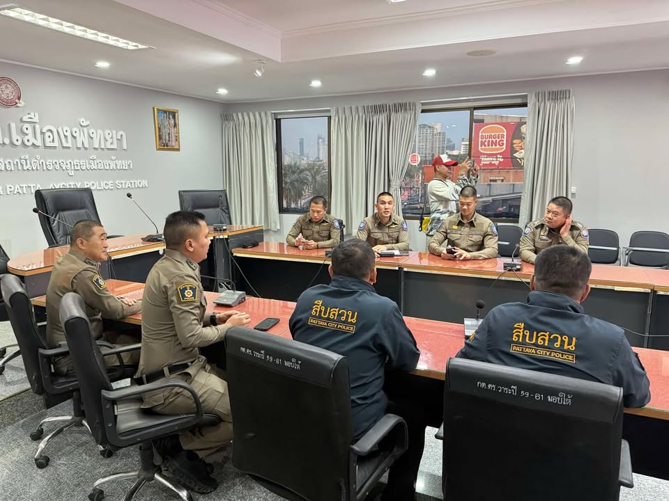 ล่าสุด วันที่ 23 ม.ค. 68 ที่ห้อง ศปก.สภ.เมืองพัทยา พ.ต.อ.นาวิน ธีระวิทย์ ผกก.สภ.เมืองพัทยา พร้อมด้วย พ.ต.ท.ศิรชัช หนูเทศ รอง ผกก.สภ.เมืองพัทยา พ.ต.ท.ฐานานนท์ อธิพันสีห์ รอง ผกก.สส.สภ.เมืองพัทยา พ.ต.ท.สิทธาภรณ์ แท้เที่ยง สว.สส.สภ.เมืองพัทยา พร้อมตำรวจท่องเที่ยว นำโดย พ.ต.อ.แมน รถทอง ผกก.2 บก.ทท.1 และ พ.ต.ท.กฤตพร แสงสุระ สว.กก.2 บก.ทท.1