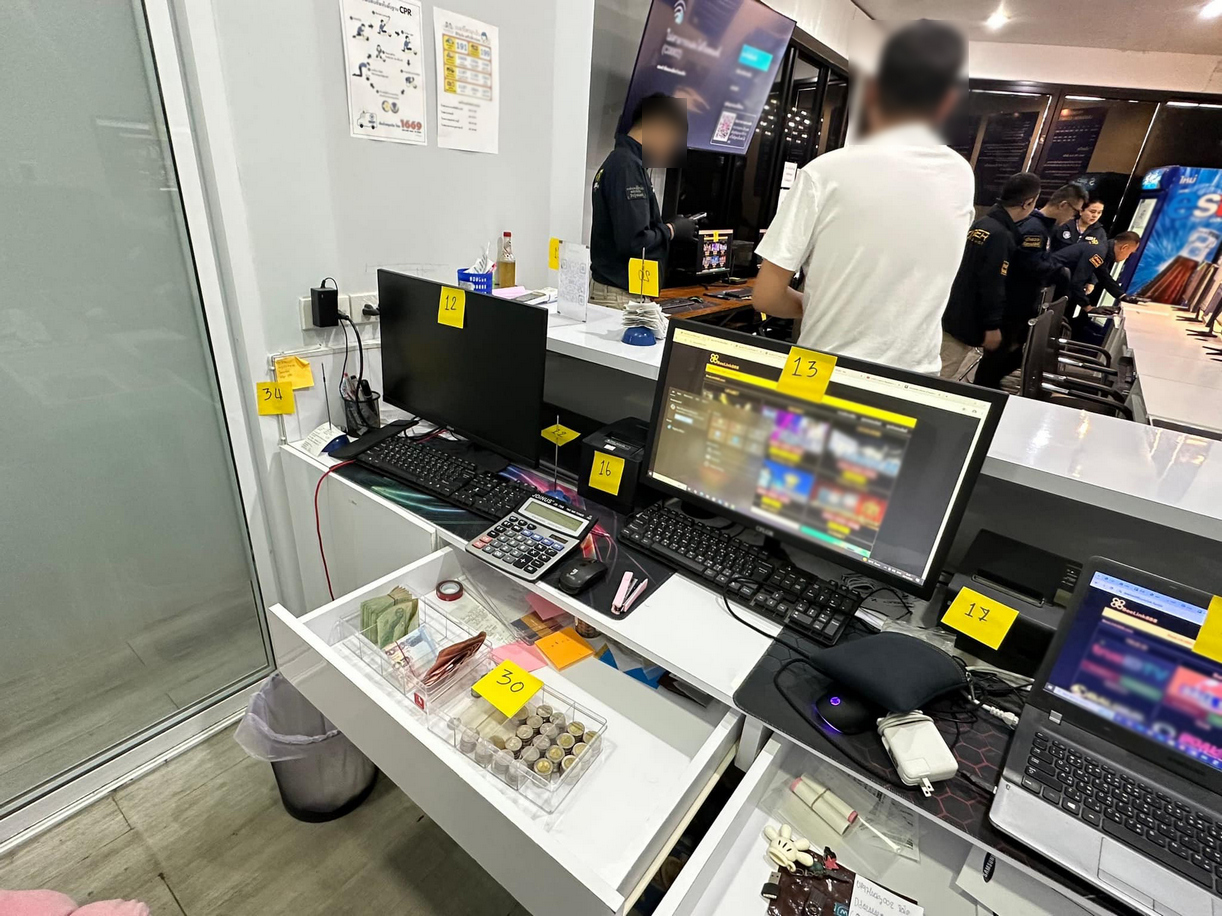 ต่อมาวันนี้ 24 ม.ค.68 เจ้าหน้าที่ตำรวจ กก.2 บก.สอท.3 นำหมายค้น ศาลแขวงอุบลราชธาสี เข้าค้นห้องเช่าไม่ทราบบ้านเลขที่ ซ.ธรรมวิถี 4 ต.ในเมือง อ.เมืองอุบลราชธานี จ.อุบลราชธานี เป็นอาคารพานิชย์ 2 ชั้น ด้านหน้าเป็นประตูกระจกติดฟิล์มทึบปกปิด ทำการเปิดรับทายผลฟุตบอลออนไลน์ ซึ่งมีประชาชนทั้งเด็ก และเยาวชนทั่วไปสามารถเข้าร่วมเล่นการพนันทายผลฟุตบอลออนไลน์ได้ทุกวัน อีกทั้งยังตั้งอยู่ห่างจากสถานศึกษาในตัวเมืองอุบลราชธานี เพียงแค่ 500 ม. พบ นายวอ (นามสมมุติ) แสดงตัวเป็นผู้ครอบครอง ภายในร้ายมีแผ่นป้ายโฆษณา ชักชวนให้เข้าเล่นการพนัน และตั้งคอมพิวเตอร์ไว้ให้บริการจำนวนมาก สามารถแทงทายผลการพนันได้ด้วยเงินสด