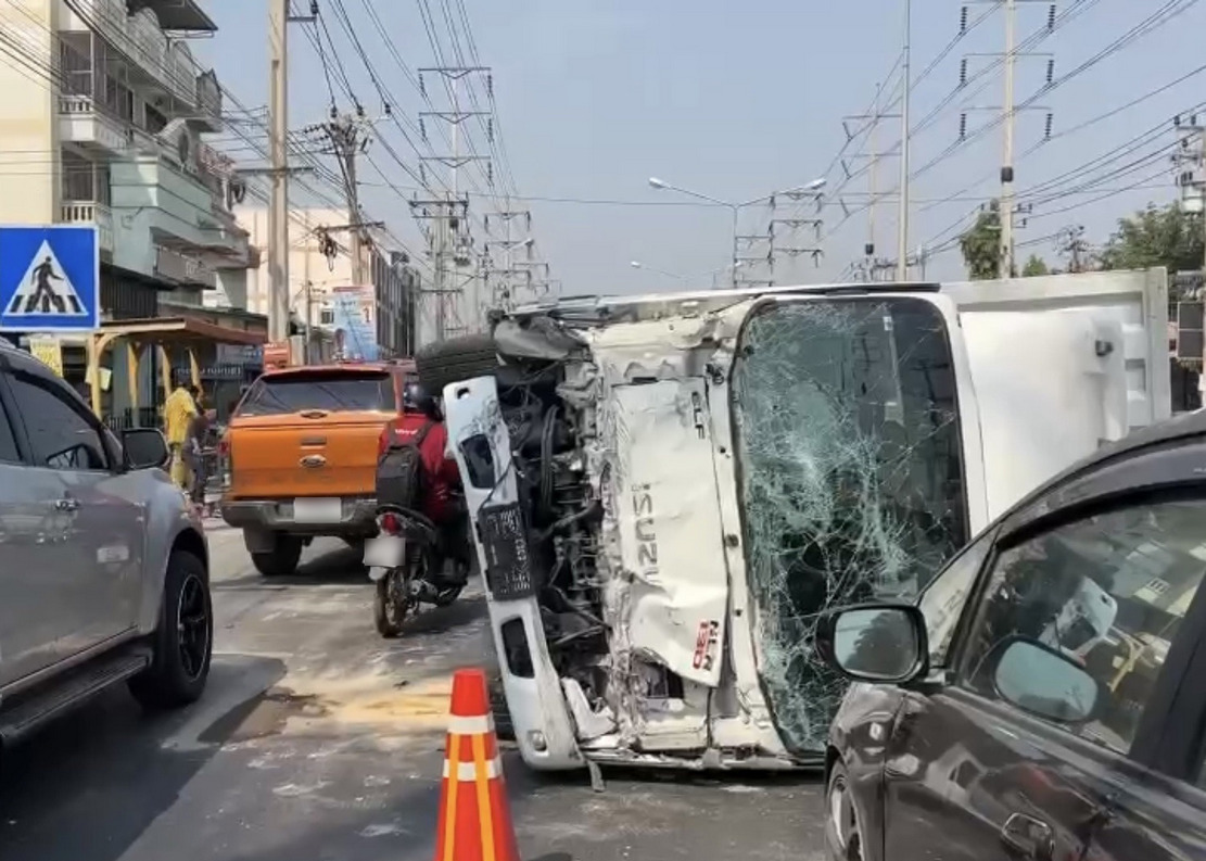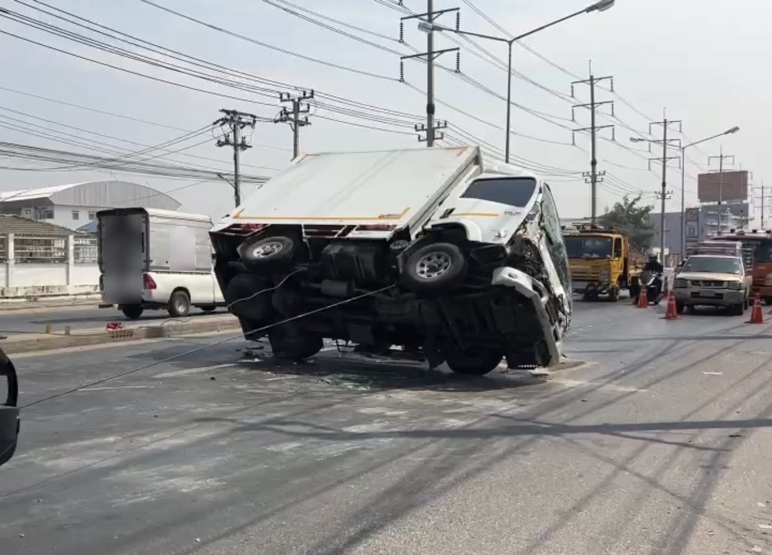 สืบเนื่องจากเมื่อเวลา 11.20 น.วันที่ 24 ม.ค.68 เจ้าหน้าที่ตำรวจ สภ.บางบัวทอง จ.นนทบุรี พร้อมเจ้าหน้าที่มูลนิธิป่อเต็กตึ๊งเดินทางเข้าตรวจสอบหลังจากได้รับแจ้งมีรถบรรทุกข้ามเกาะกลางถนนพุ่งชนกับรถที่อยู่ฝั่งตรงข้ามมีผู้บาดเจ็บหลายคน เหตุเกิดหน้าหมู่บ้านนครทอง ปาร์ควิว 1 ถนนบางกรวย-ไทรน้อย ต.บางบัวทอง อ.บางบัวทอง จึงรุดเข้าตรวจสอบ