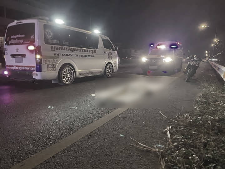 อุบัติเหตุ รถกระบะชนคนข้ามถนน มีผู้เสียชีวิตเป็นผู้ชาย 1 รายกลางถนนแสงชูโต จ.กาญจนบุรี