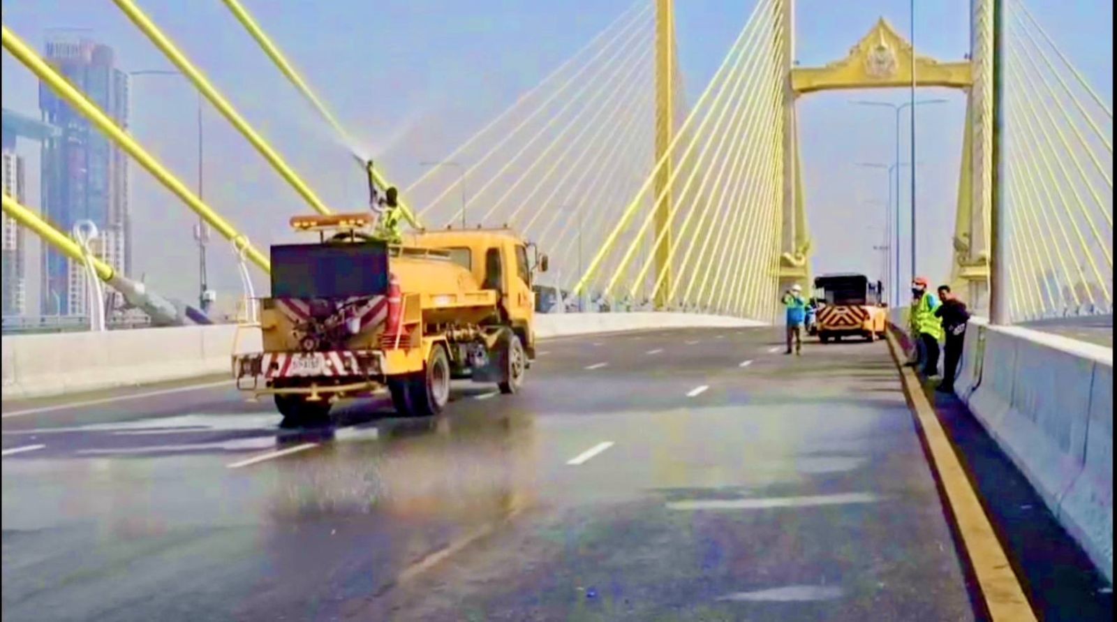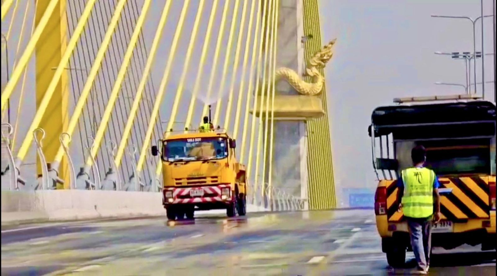 3. การลดฝุ่นสะสมบนสะพานก่อนวันงาน - กทพ. มีการใช้รถน้ำฉีดน้ำเพื่อลดฝุ่นละอองที่สะสมบนสะพาน เพื่อช่วยบรรเทาปัญหาฝุ่นและสร้างความมั่นใจในความสะอาดของพื้นที่จัดงาน