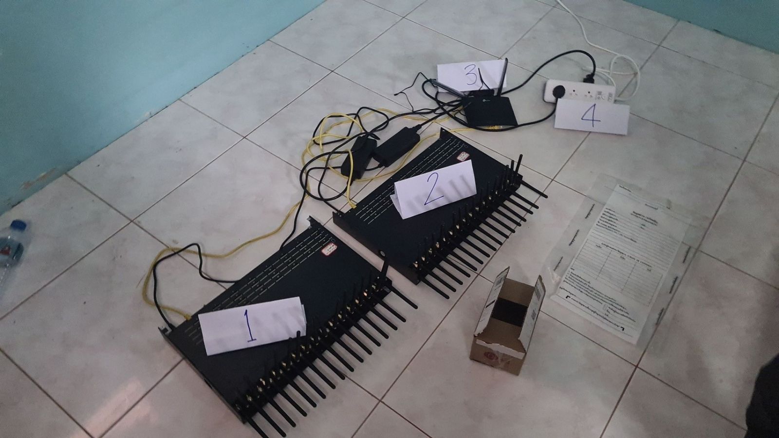 ต่อมา เมื่อประมาณเดือน ธ.ค.67 เจ้าหน้าที่ตำรวจ กก.6 บก.ป. ได้รับการประสานจากเจ้าหน้าที่ ศูนย์ปฏิบัติการแก้ไขปัญหาอาชญากรรมออนไลน์หรือ (AOC) ว่าได้ทำการตรวจสอบข้อมูลพบว่าในพื้นที่ อ.สะเดา จ.สงขลา มีการติดตั้งเครื่อง SIM BOX อีก จึงได้ทำการสืบสวนและได้ขออนุมัติหมายค้นจากศาลจังหวัดนาทวี เพื่อค้นอาคารหลังหนึ่ง โดยศาลจังหวัดนาทวีได้อนุมัติหมายค้นดังกล่าว จนเจ้าหน้าที่ตำรวจ กก.6 บก.ป. สามารถตรวจยึดอุปกรณ์ SIM BOX ได้อีกจำนวน 2 เครื่อง และได้ขยายผลเพิ่มเติมเพื่อดำเนินคดีกับผู้ต้องหาในเครือข่ายต่อไป