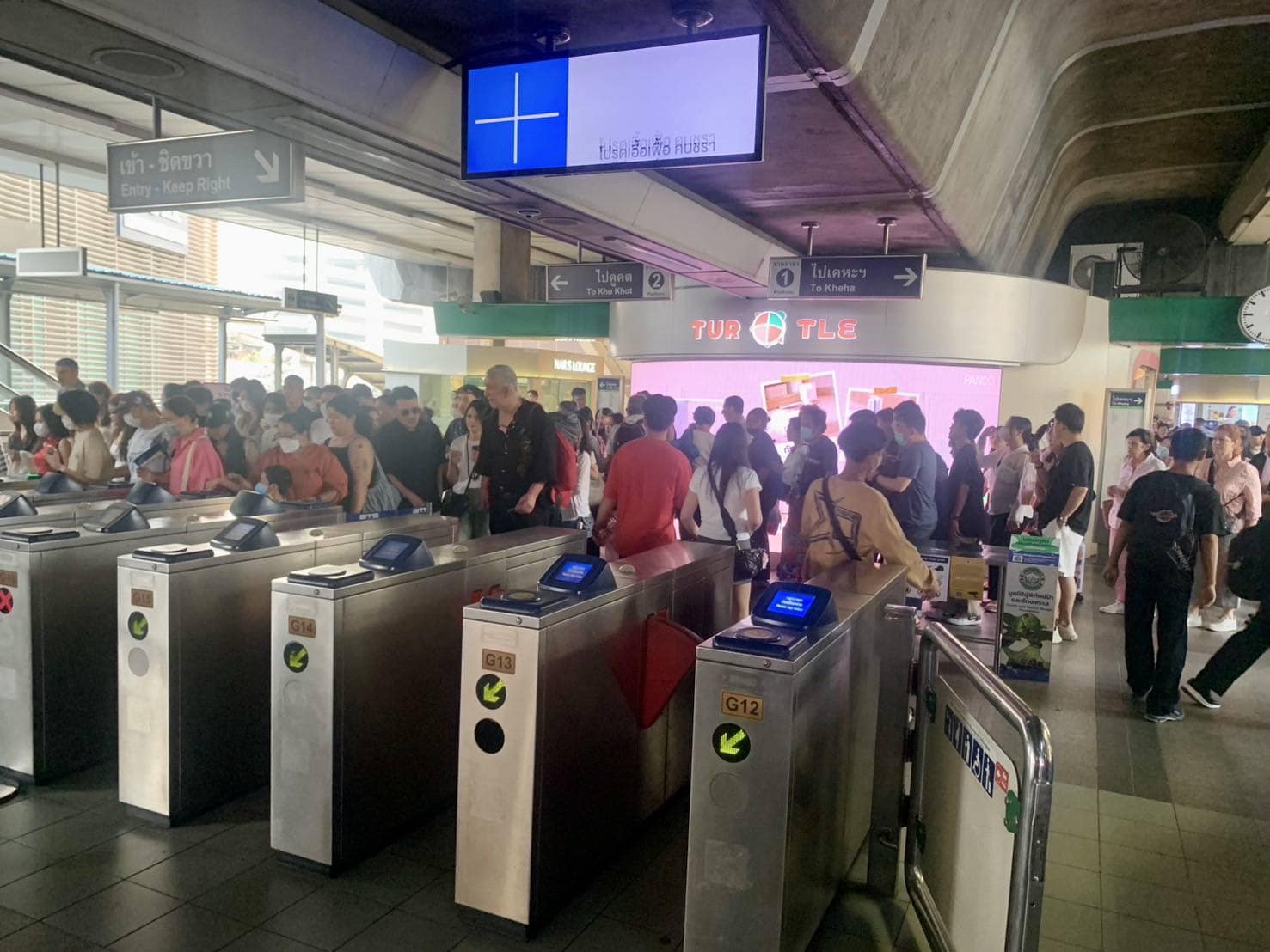 ซึ่งหากเรียงลำดับ จะพบว่า มีผู้ใช้บริการรถไฟฟ้าสายสีทองเพิ่มมากขึ้น 1.42 เท่าเมื่อเทียบกับค่าเฉลี่ยสามเสาร์ที่ผ่านมา รองลงมาคือรถไฟฟ้าสายสีเหลืองและสายสีชมพู เพิ่มขึ้นร้อยละ 92.68 และร้อยละ 86.28 ตามลำดับ โดยทั้งสามสายทางเป็นระบบขนส่งมวลชนขนาดรอง (feeder) ที่มีเส้นทางผ่านที่อยู่อาศัยของประชาชนและเชื่อมโยงกับรถไฟฟ้าขนส่งมวลชนหลัก