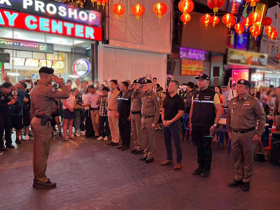ช่วงหัวค่ำ ของคืนวันที่ 27 มกราคม 2568 ที่ถนนคนเดิน วอล์คกิ้งสตรีท เมืองพัทยา จ.ชลบุรี พล.ต.ต.นรเศรษฐ์ สุวรรณนิกขะ รรท.ผบก.ทท.1 พร้อมด้วย พ.ต.อ.นภัสพงษ์ โฆษิตสุริยมณี ผกก.ตม.จว.ชลบุรี พ.ต.ท.กวิณวัชร์ อารยะสุริวงศ์ รอง ผกก.ตม.ชลบุรี ได้บูรณาการกำลังตำรวจท่องเที่ยว ตรวจคนเข้าเมืองจังหวัดชลบุรี เจ้าหน้าที่ฝ่ายปกครอง กว่า 90 นาย