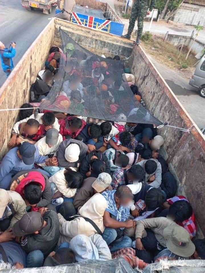 เมื่อวันที่ 31 ม.ค.68 พล.ต.อัษฎาวุธ ปันยารชุน ผู้บัญชาการกองพลทหารราบที่ 9 (ผบ.พล ร.9) ในฐานะ ผู้บัญชาการกองกำลังสุรสีห์ เปิดเผยว่า จากการบูรณาการร่วมกับฝ่ายความมั่นคง และขอความร่วมมือผู้ประกอบกิจการที่พัก โรงแรม ในพื้นที่ชายแดนจังหวัดกาญจนบุรี ที่ผ่านมา จึงได้รับแจ้งจากแหล่งข่าวว่า จะมีขบวนการลักลอบขนแรงงานต่างด้าวผิดกฎหมายมาตามเส้นทางธรรมชาติ โดยกลุ่มขบวนการจะนำแรงงานเถื่อนนั่งเรือมาขึ้นฝั่งบริเวณ บ.ลิเจีย อ.สังขละบุรี หลังจากนั้นจะอาศัยรถบรรทุกสิบล้อพ่วง เพื่อตบตาเจ้าหน้าที่ และมุ่งหน้าเข้าสู่พื้นที่ตอนใน จึงได้สั่งการให้ พ.อ.พรรณศักย์ เพรียวพานิช ผู้บังคับการกรมทหารราบที่ 29 ในฐานะ ผู้บังคับหน่วยเฉพาะกิจลาดหญ้า กองกำลังสุรสีห์ พร้อมด้วย พ.อ.ปิยะเณศร์ ภัทรศาศวัตวงษ์ รองผู้บังคับหน่วยเฉพาะกิจลาดหญ้า กองกำลังสุรสีห์ บูรณาการกำลังร่วมกับ ตำรวจภูธรภาค 7 สภ.ทองผาภูมิ กองร้อยตำรวจตระเวนชายแดนที่ 135 และฝ่ายปกครองอำเภอทองผาภูมิ เพิ่มความเข้มงวดในการตรวจค้นยานพาหนะที่สัญจรผ่านด่านความมั่นคงทุกจุด