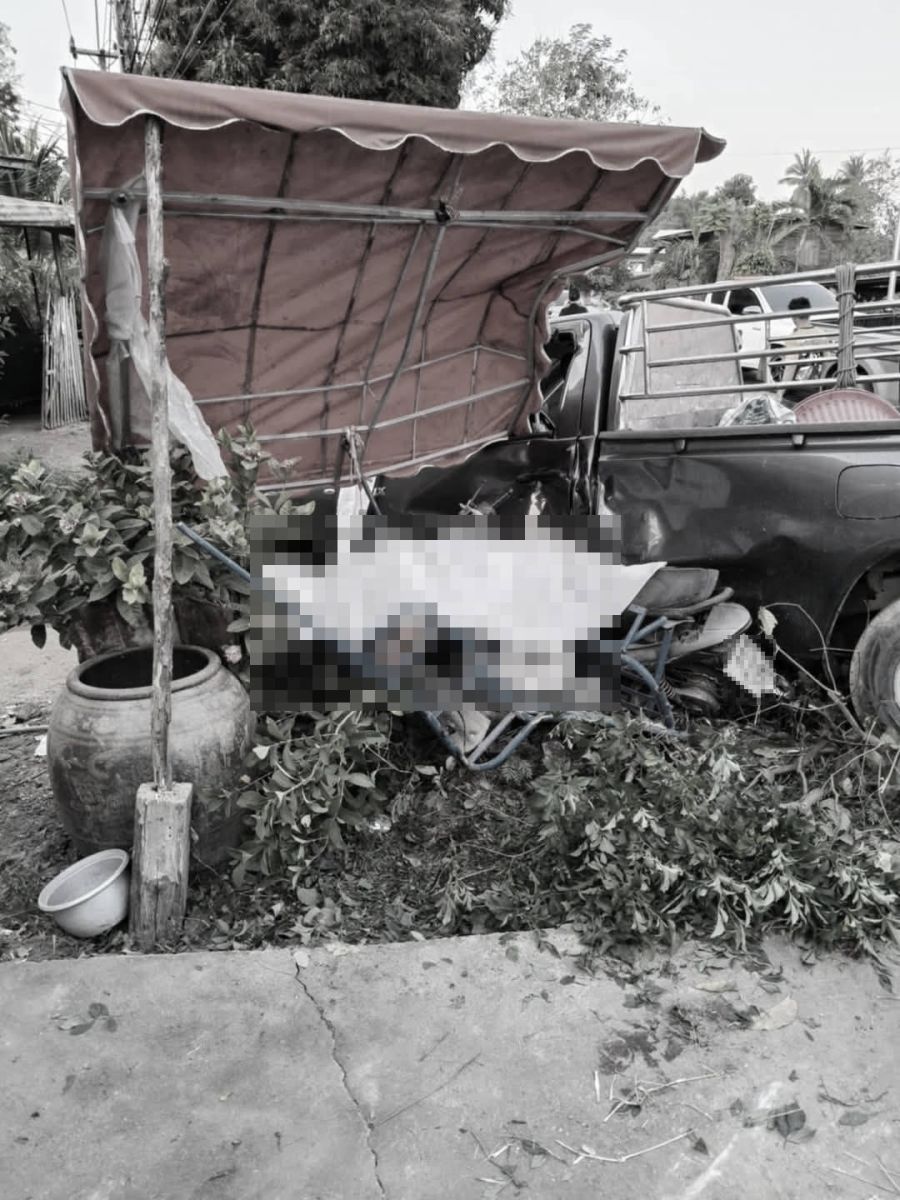 รถกระบะชนกับรถจักรยานยนต์พ่วงข้าง มีผู้บาดเจ็บสาหัส 2 รายและเสียชีวิตชาย 1 ราย จ.สุโขทัย