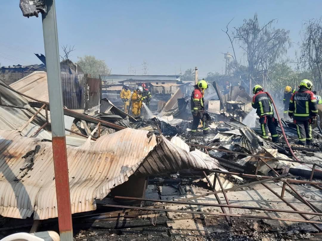 ไฟไหม้ห้องพักคนงานต่างด้าว โรงงานผลิตท่อพลาสติกและอุปกรณ์ ย่านกระทุ่มแบน จนท.พร้อมรถดับเพลิง ระดมใช้หัวฉีดน้ำสกัดเพลิง