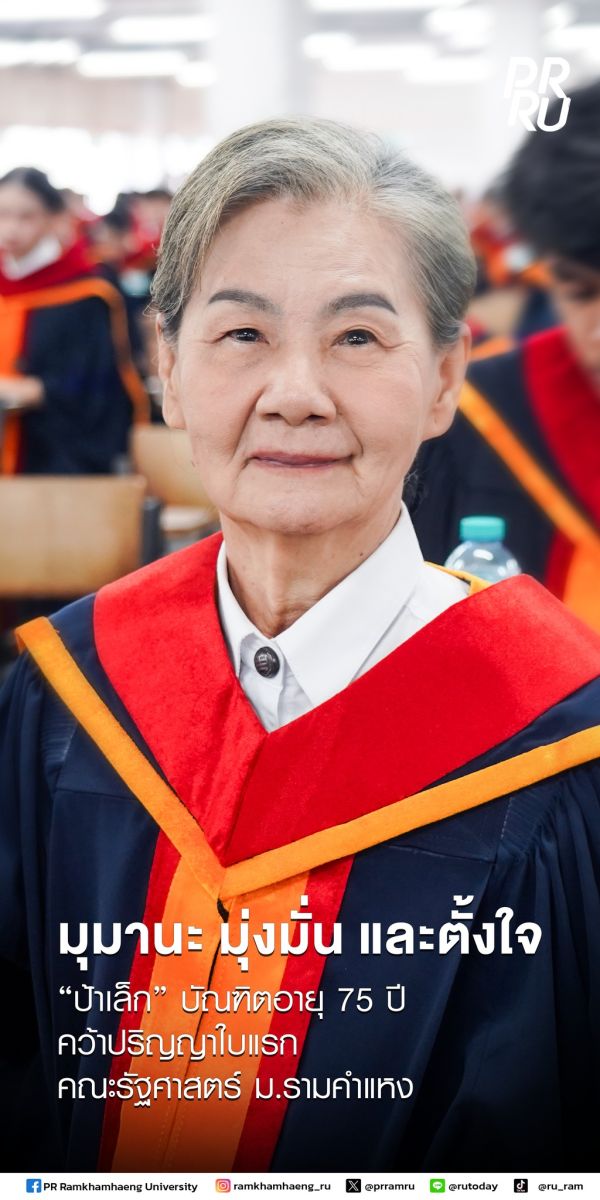 วันที่ 8 กุมภาพันธ์ 2568 เพจเฟซบุ๊ก PR Ramkhamhaeng University ได้โพสต์ข้อความเปิดเผยเรื่องราวสุดประทับใจของบัณฑิตใหม่ในวัย 75 ปี โดยระบุว่า