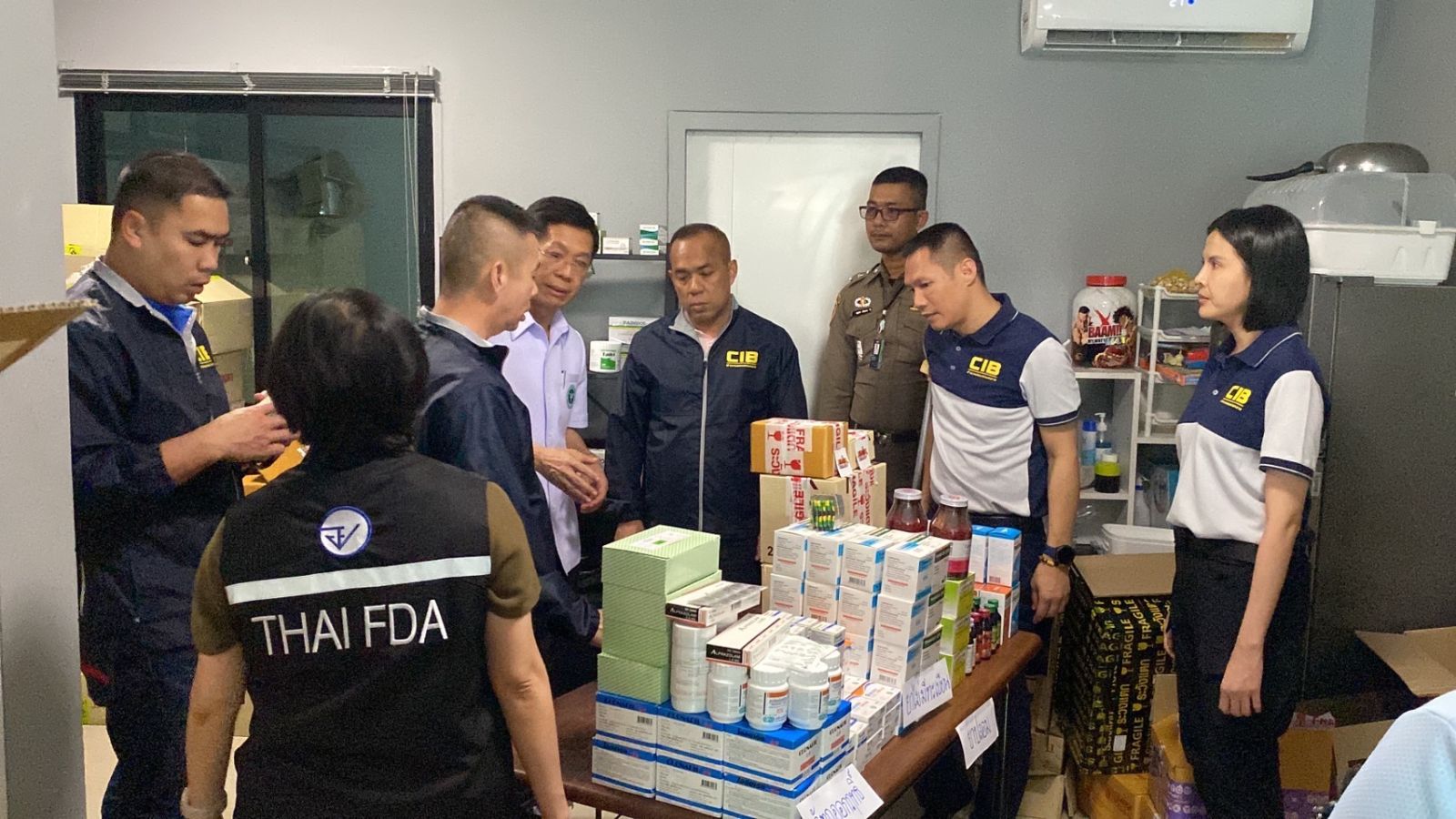 นพ.วิทิต สฤษฎีชัยกุล รองเลขาธิการคณะกรรมการอาหารและยา กล่าวว่า สถานที่ดังกล่าวไม่ได้รับอนุญาตด้านยา ไม่สามารถทำการโฆษณาและขายยาให้แก่ประชาชนได้ ซึ่งพบว่าสถานที่ดังกล่าวมีพฤติการณ์ในการโฆษณาขายและรับออเดอร์จากลูกค้าทางเฟสบุ๊ค ทางเว็บไซด์ และทางกลุ่มไลน์ เมื่อรับออเดอร์แล้วจะทำการจัดส่งทางไปรษณีย์ให้แก่ลูกค้าโดยตรง พบมีการรับซื้อยาอันตรายกลุ่มเสี่ยงหลายยี่ห้อ ซึ่งจากการตรวจค้นพบแต่ยาอันตรายกลุ่มเสี่ยง ประเภท ยาน้ำแก้แก้ไอ ยาเขียวเหลือง รวมถึงวัตถุออกฤทธิ์ต่อจิตประสาท ประเภท 2 และ 4 ซึ่งเป็นยาที่นิยมนำไปผสมน้ำกระท่อม ในสูตร 4x100 และที่สำคัญคือ พบว่ายาดังกล่าวบางรายการเป็นยาปลอม ยาไม่มีทะเบียนที่สงสัยว่าจะนำเข้าจากต่างประเทศ โดยผู้ที่ใช้ยาดังกล่าวจะมีอาการหลอน เคลิบเคลิ้ม มึนงง และเป็นสาเหตุในการติดยาเสพติดที่มีฤทธิ์รุนแรงต่อไป ขอเตือนผู้ขายยาอันตรายกลุ่มเสี่ยง ว่าการกระทำดังกล่าวนอกจากจะมีโทษปรับแล้ว ยังมีโทษจำคุกอีกด้วย ขอให้ประชาชนช่วยเป็นหูเป็นตา เพื่อลดการนำยาไปใช้ในทางที่ผิดในชุมชนจนเป็นสาเหตุของการเสพติดยาที่รุนแรงตามมา หากผู้บริโภคพบการลักลอบผลิตหรือขายยาโดยไม่ได้รับอนุญาต สามารถแจ้งเบาะแสได้ที่สายด่วน อย. 1556 หรือผ่าน Email: 1556@fda.moph.go.th, Line: @FDAThai, Facebook: FDAThai หรือ ตู้ปณ.1556 ปณฝ. กระทรวงสาธารณสุข จ.นนทบุรี 11004 หรือสำนักงานสาธารณสุขจังหวัดทั่วประเทศ เพื่อจะได้ดำเนินการตามกฎหมายต่อไป