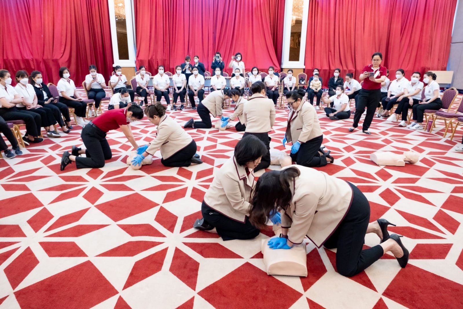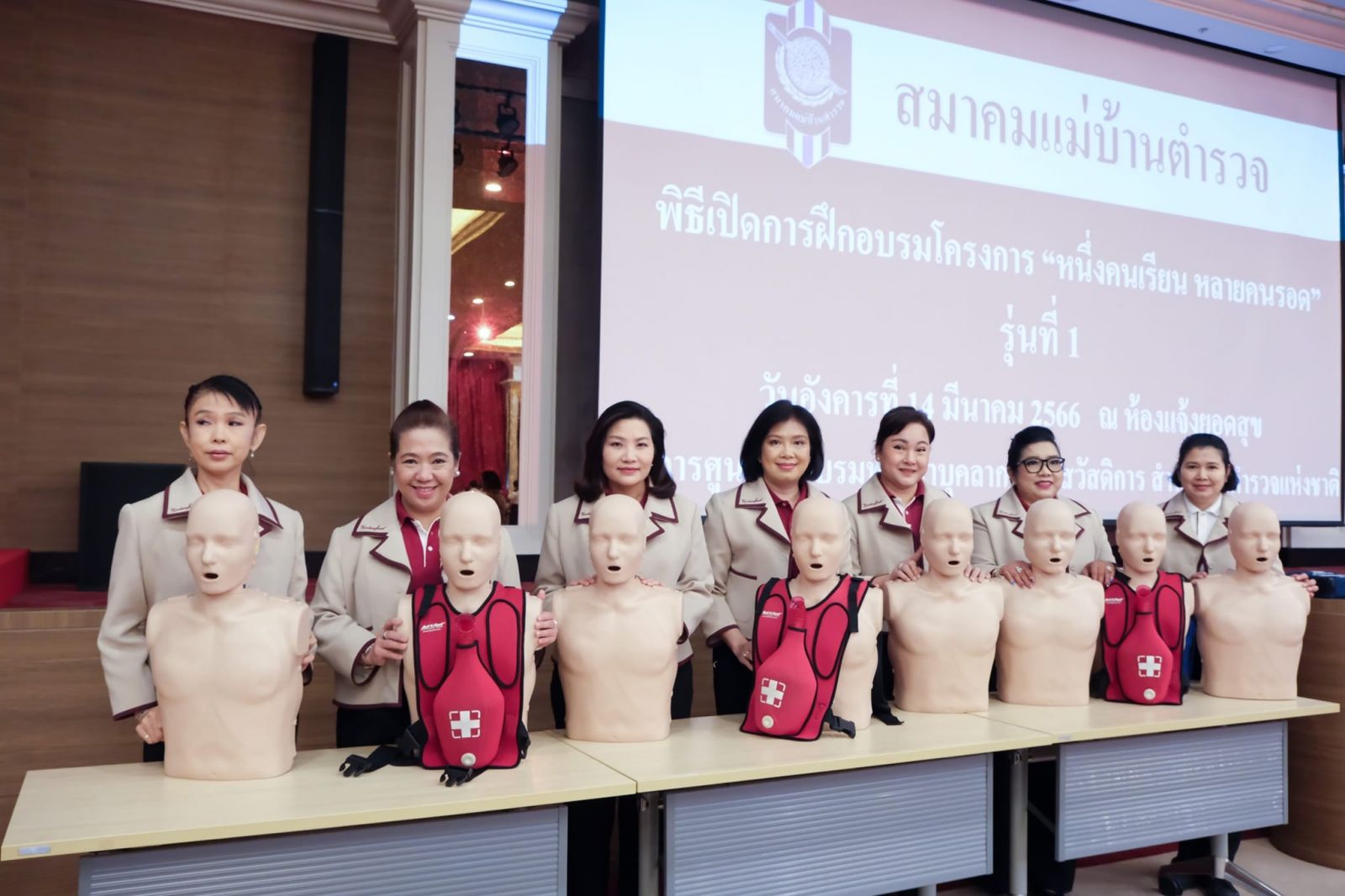 การอบรมในรุ่นที่1 นี้ มีผู้เข้าร่วมฝึกอบรมจำนวน 45 คน จากสมาชิกชมรมแม่บ้านตำรวจ บชน. สอท. สตม. บช.ตชด. บช.ปส. บช.ทท. รร. นรต. โดยจะได้รับความรู้จากวิทยากรผู้เชี่ยวชาญในการประเมินสถานการณ์ผู้ป่วย วิธีปฐมพยาบาลเบื้องต้น การช่วยฟื้นคืนชีพขั้นพื้นฐาน และการใช้เครื่องฟื้นคืนคลื่นหัวใจด้วยไฟฟ้าแบบอัตโนมัติ (CPR & AED) การฝึกช่วยเหลือผู้ป่วยสำลักอาหาร หรือมีสิ่งอุดกั้นทางเดินหายใจ เป็นการฝึกปฏิบัติเสมือนจริงใช้เวลา 6 ชั่วโมง จัดทั้งหมด 3 รุ่น รุ่นละ 45 คน รวม 135 คน โดยผู้ที่ผ่านการอบรมจะได้รับประกาศนียบัตรการปฐมพยาบาลเบื้องต้นและการช่วยชีวิตขั้นพื้นฐาน