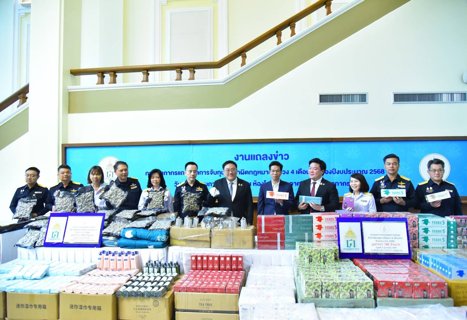 (ภาพข่าว : กรมศุลกากรแถลงผลการจับกุมสินค้าผิดกฎหมายในช่วง 4 เดือนแรกของปีงบประมาณ 2568 มูลค่ากว่า 780 ล้านบาท วันที่ 5 กุมภาพันธ์ 2568)