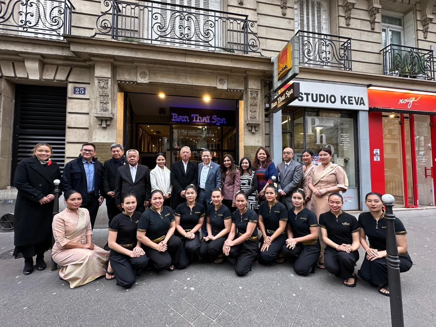 คุณศศิมา ปาร์ค นายกสมาคมนวดไทยฯ กล่าวว่า ขอบคุณที่ทางภาครัฐให้ความสำคัญกับธุรกิจที่นำเอกลักษณ์ของประเทศไทยมาเผยแพร่ในต่างประเทศ ซึ่งขอบคุณท่านรัฐมนตรีว่าการกระทรวงแรงงานและผู้บริหารที่เข้ามาตรวจเยี่ยมพูดคุย เพื่อรับทราบปัญหา และให้คำแนะนำให้ธุรกิจนวดแผนไทยเดินหน้าต่อไปอย่างยั่งยืน โดยขณะนี้ พนักงานนวดแผนไทยในปารีส และทั่วประเทศฝรั่งเศสได้รับความนิยมมาก ซึ่งองค์การยูเนสโก กรุงปารีส ได้ขึ้นทะเบียนให้นวดแผนไทยเป็นมรดกภูมิปัญญาทางวัฒนธรรมของมนุษยชาติ ซึ่งมีค่าบริการในแต่ละ package เริ่มต้นที่ 100 ยูโร (ประมาณ 3,500บาท) มีบริการนวดเท้า นวดแผนไทย และสปา สถานการณ์ขณะนี้ มีความต้องการด้าน แรงงานที่มีความสามารถด้านนวดแผนไทย และผู้ฝึกสอนกว่าร้อยคน ซึ่งค่าจ้างพนักงานนวดได้ค่าจ้าง เริ่มต้น 1,824 ยูโร (ประมาณกว่า 64,000บาท) ไม่รวมทิปและค่าทำงานล่วงเวลา และทำงานเพียง 5วัน/สัปดาห์ตามกฎหมายฝรั่งเศส พร้อมทั้งมีสวัสดิการดูแลด้านประกันสังคมและประกันสุขภาพให้ด้วย