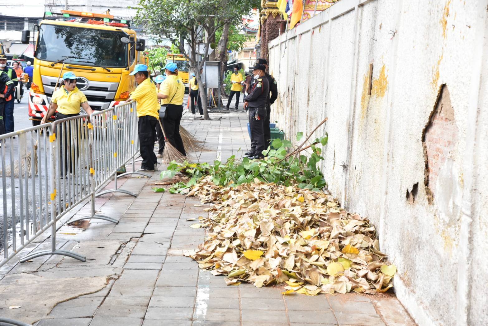 ทั้งนี้ รองผู้ว่าฯ จักกพันธุ์ ได้มอบหมายให้เขตฯ ประสานสำนักการโยธาดำเนินการปรับปรุงภูมิทัศน์ทางเท้าและผิวการจราจรถนนพลับพลาไชย ภายหลังยกเลิกพื้นที่ทำการค้าหน้ามูลนิธิป่อเต็กตึ๊ง และหน้าวัคณิกาผล เพื่อให้เกิดความเป็นระเบียบเรียบร้อย ประชาชนได้ใช้ประโยชน์ในทางสาธารณะร่วมกัน โดยปรับปรุงภูมิทัศน์และซ่อมแซมทางเท้าที่ชำรุดเสียหาย เพื่อให้เป็นไปตามหลัก Universal Design จัดทำทางลาดอำนวยความสะดวกสำหรับรถเข็นคนพิการ รวมถึงปรับปรุงผิวจราจรถนนพลับพลาไชย ประสานสำนักการระบายน้ำตรวจสอบบ่อพักและท่อระบายน้ำ พร้อมทั้งให้เขตฯ ประสานหน่วยงานที่เกี่ยวข้อง เพื่อประชุมหารือถึงแนวทางในการปรับปรุงภูมิทัศน์ร่วมกันต่อไป โดยในวันนี้ เขตฯ ได้พัฒนาทำความสะอาดพื้นที่ทางเท้าบริเวณหน้ามูลนิธิป่อเต็กตึ๊ง และหน้าวัคณิกาผล ถนนพลับพลาไชย ทาสีขอบทางเท้า ฉีดล้างทำความสะอาดถนนและทางเท้าทั้ง 2 ฝั่ง ตัดแต่งกิ่งไม้ เก็บกวาดใบไม้แห้ง จัดระเบียบสายไฟฟ้า เพื่อความสะอาดและเป็นระเบียบเรียบร้อยในพื้นที่